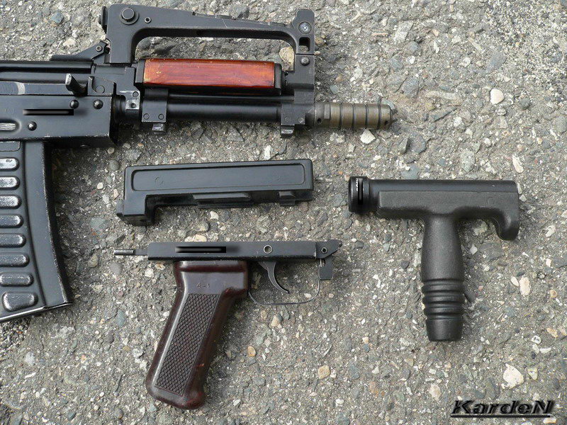 前三种组合只需要更换枪管就可以,当要转换成突击步枪/榴弹发射器的组合时,还要更换射击控制模块(即带扳机组和握把的部分),还包括了一个以GP-25为基础改进的40mm榴弹发射器,在这个模块中是使用一个扳机来同时控制榴弹发射器和步枪,并通过一个标有“榴弹”和“步枪”两个档的选择杆来选择控制发射的对象。