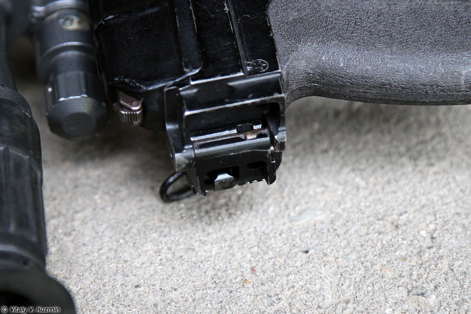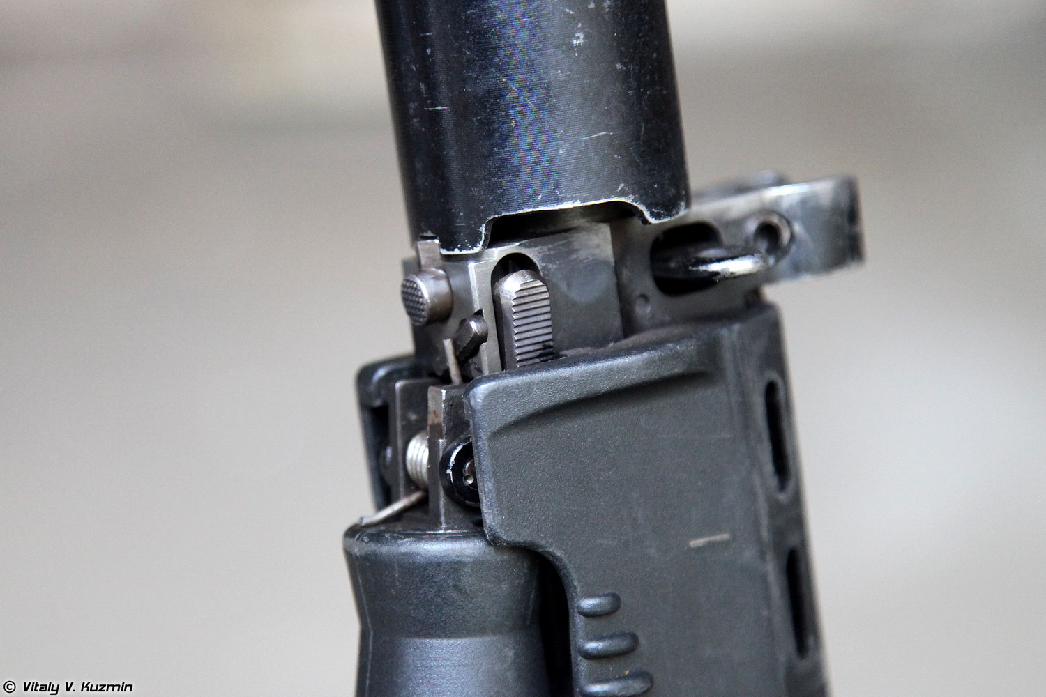 SR3M的机械瞄具不像AS VAL那样安装在消声器上,因为SR3M的消声器是可选配件