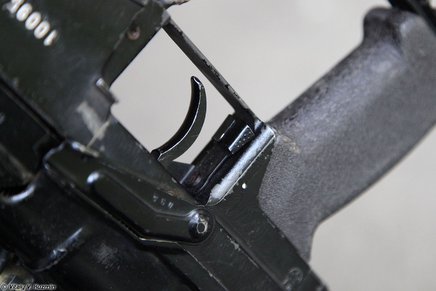和SR-3不同,SR-3M恢复了AS的传统拉机柄,位于枪机框右侧,从抛壳口伸出,而且保险杆也是和AS一样是在机匣右侧。快慢机则是位于扳扳机护圈内的拨杆式,标记形式和SR-3一样,左侧的3点标记为全自动,右侧的单点为半自动。