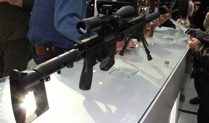 MTs-566的前身是TsKIB SOO在2017年推出的源于早期实验型号OTs-129,无论OTs-129还是MTs-566,均为7.62x51mm NATO口径,并采用短行程导气活塞自动原理。该枪的角色类似于美国M110系列或乌克兰的UAR-10步枪。配600mm比赛级枪管,目前曝光的照片中弹匣是Magpul公司的AR-10 PMAG弹匣。护木有4面皮卡汀尼导轨,护木顶部导轨为全长式,一直延伸至机匣顶部,折叠机械瞄具是固定在枪上,而不是通过导轨安装,据说是因为俄罗斯军方认为导轨安装的机械瞄具容易损坏。枪托可伸缩,不使用时还可向右侧折叠。它配备了四轨护木和一个部分包覆枪管的消音器。在目前曝光的照片中,都安装了消声器,因此枪管的全貌看不到。根据官方资料,该枪的重量为4.8公斤,全长为1250mm,枪管长600mm,其他资料尚不清楚。需要注意的是,虽然该枪配备AR-10弹匣,但下机匣的与AR-10相比明显较矮,手枪形握把的位置远高于AR-10,这说明其击发机构与AR-10不同,下机匣的空间无法容纳AR-10式的击锤结构。