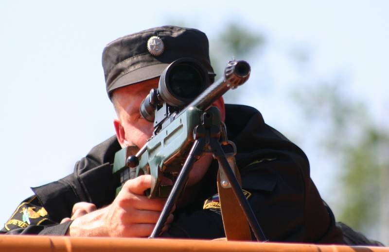 俄罗斯毒品管理局2015年底举行的内部射击比赛上使用SV98的选手