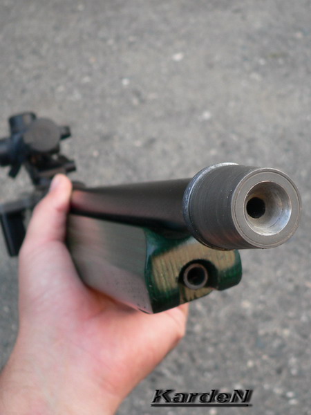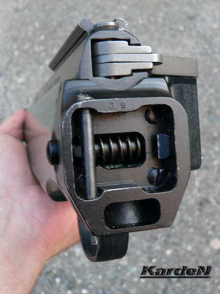 枪管为冷锻成型,有6条右旋膛线,缠距420mm,枪膛没有镀铬。该枪的保险柄位于扳机护圈前方。把保险柄拨至后方,则枪机和扳机都会被锁住;如果想要解除保险,则将保险柄顶至前方即可。扳机力从0.5~1.0kg可调。