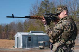 进行外军武器训练中的美国海军陆战队士兵