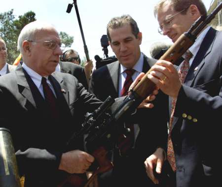 以色列也有一些缴获的SVD,图为几位美国的参议员在2002年参观一个以色列军事基地