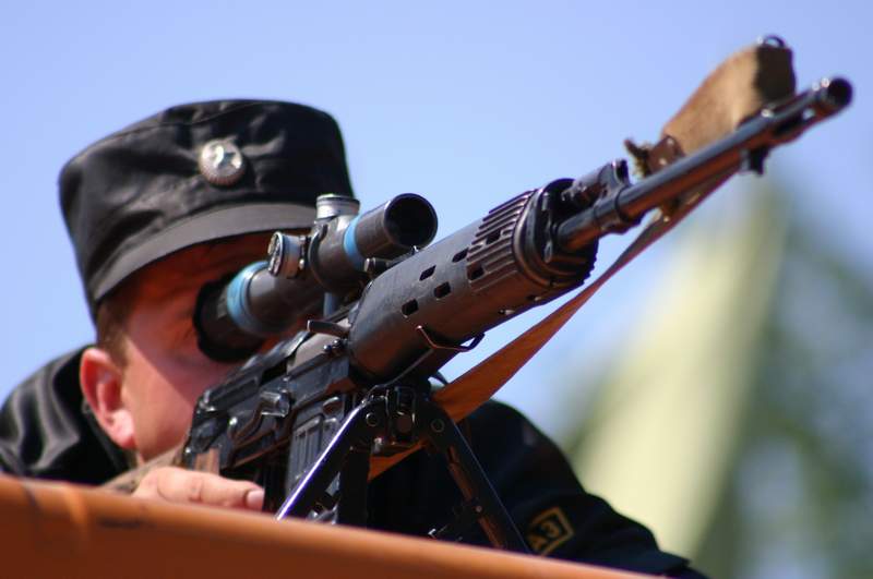 乌克兰特种部队改装的SVD,机匣顶增设一段“桥”式导轨用于安装瞄准镜