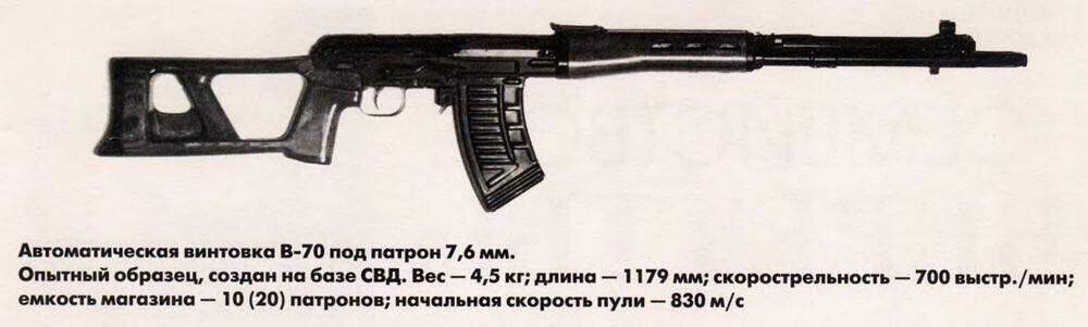 德拉贡诺夫对此要求非常谨慎,他认为折叠枪托会降低武器的精度,建议采用一种折衷的方案:缩短枪管和消焰器。这种型号的长度比原来的型号短了约100mm。除此以外,这种武器还配备了一个两脚架。改型的另一点还是还要加上了全自动的功能,但多种不同的测试都显示这种步枪太轻,在全自动模式下的表现非常糟糕。结果,这种全自动狙击步枪的构思被放弃了。