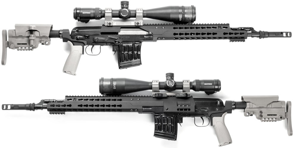 同时,米哈伊尔·卡拉斯尼柯夫也正在设计他的狙击步枪,以参加这个竞争。他制造了两种外形都具有AKM突击步枪典型特征的原型枪,包括: