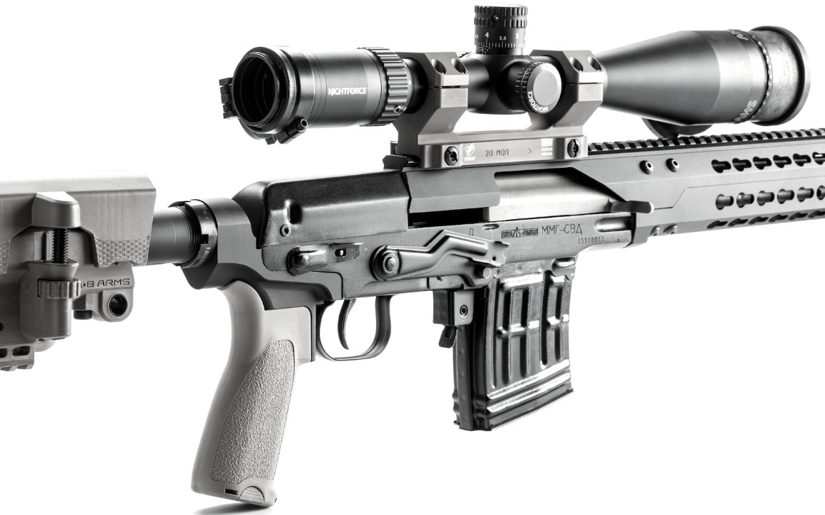 在1958年,德拉贡诺夫接受了一个挑战——设计一种半自动的狙击步枪。新步枪由GRAU(Glavnoye Raketno - Artilleriyskoye Upravleniye——苏联国际部的主要导弹和火炮部门)下属的MENS所构想,要求要有很高的精确度和比较远的有效射程,武器必须轻巧、紧凑,能半自动射击。
