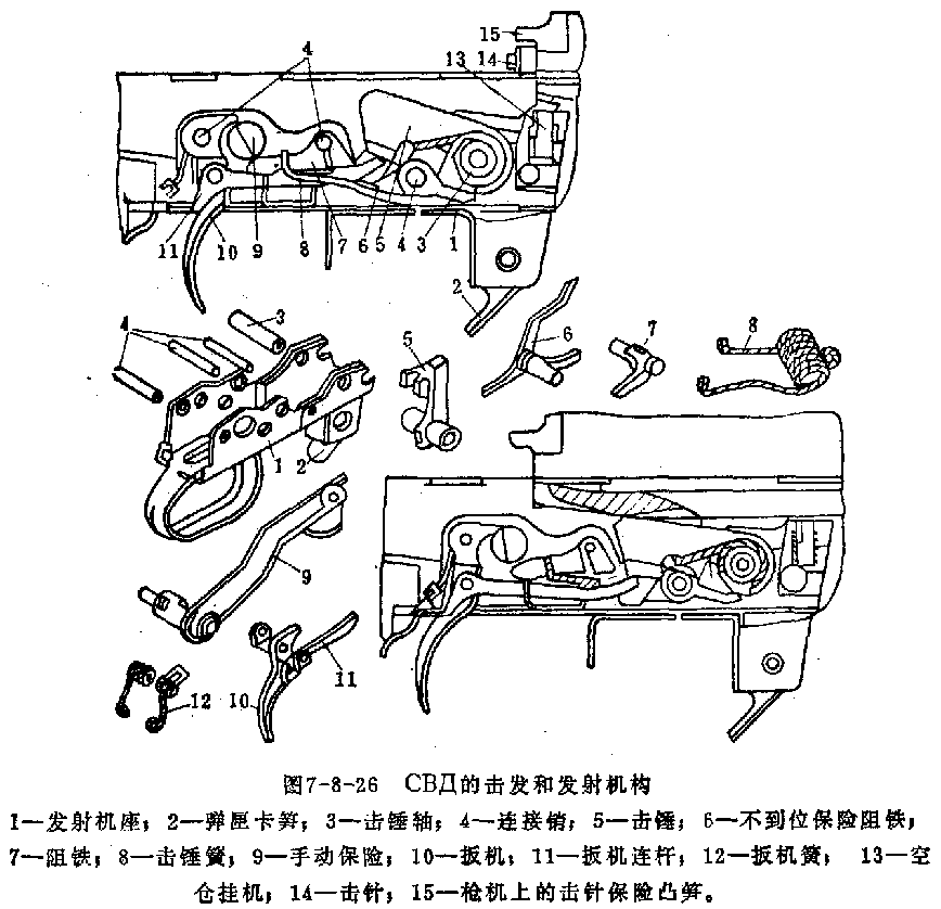 ![]() 护木的上导轨延伸至机匣盖上方,可用于安装瞄准镜 |