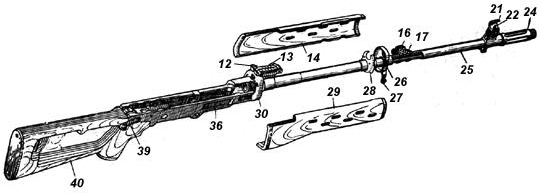 | 16 | 导气管固定销 | 38 | 扳机组件 |
