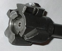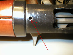 在导气管前端的气室有一个气体调节器,用来调整火药燃气的压力。在平常环境及保养良好的情况下,调节器设在“1”的位置上,但当使用环境恶劣或战争上无法正常保养,造成导气管积碳过多影响正常操作时,可以将调节器设在“2”的位置上,增加推动活塞的压力。