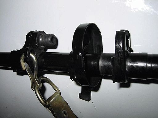 枪管前端有瓣形消焰器,长70mm,有5个开槽,其中3个位于上部,2个位于底部。这样,从消焰器上部排出的气体比从底部排出的多,实际效果是将枪口下压从而在一定程度上减轻枪口上跳。另外消焰器的前端呈锥状,构成一个斜面,将一部分火药气体挡住并使之向后,以减弱枪的后坐。在准星座下方有一个刺刀座,可安装刺刀这一点与目前绝大多数的狙击步枪都不一样。