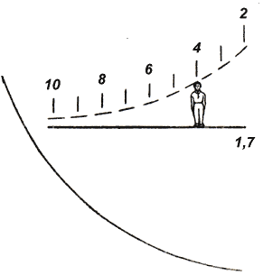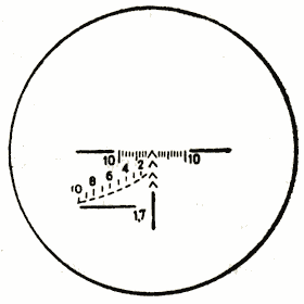 PSO-1瞄准镜测距方式,以1.7米高度为参照物,每一个数字代表递增100米距离。 |