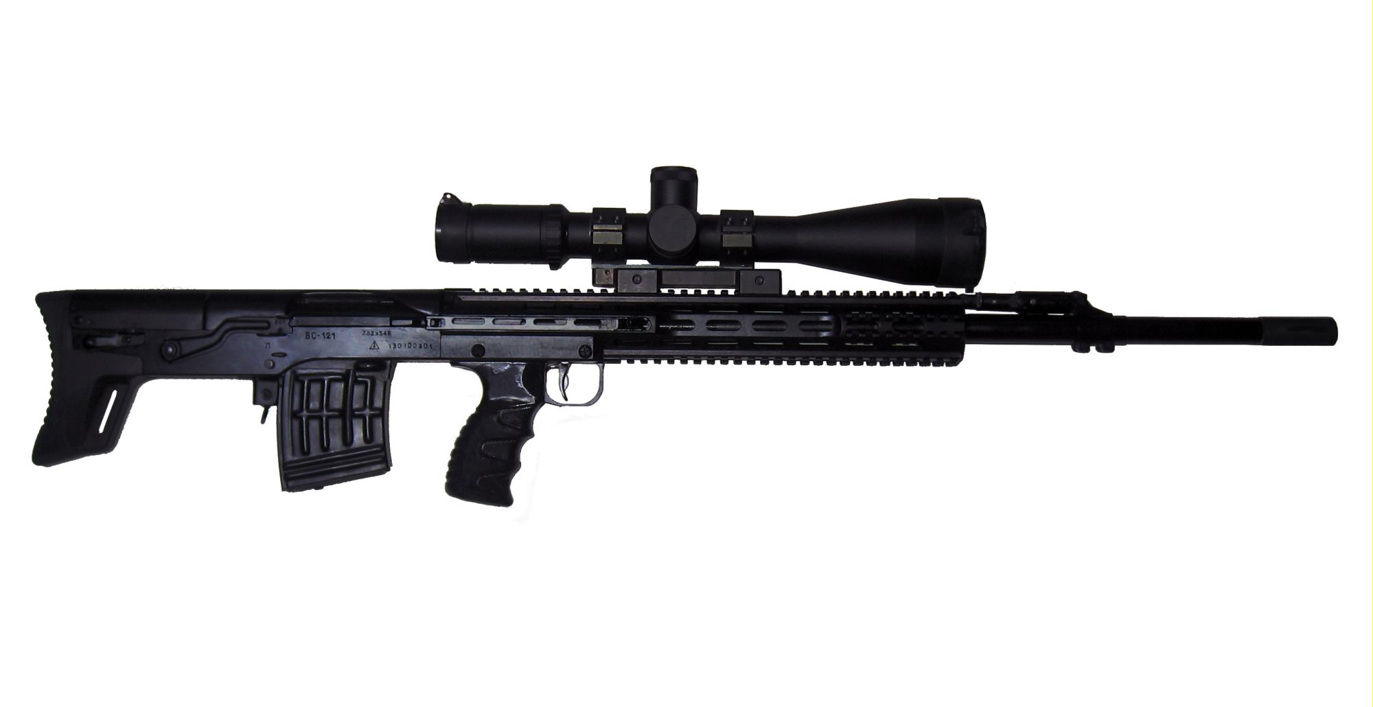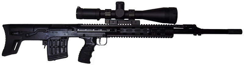 VS-121(俄文ВС-121)是伊孜玛什公司在2013年5月推出的一种SVD的无托型。有说法是为军方设计的,不过估计出口也是该枪的主要设计目的,VS-121有7.62×54mm R和7.62×51mm NATO两种口径,据说还将采用一种伊孜玛什公司自行研制的新口径弹药。另外枪上有4个方向的皮卡汀尼导轨,可以在顶部安装市面上大部分的瞄准镜,而不是使用SVD的侧式瞄准镜架。由于改成无托结构,因此在枪管长保持了620mm的情况下,全枪长度缩短了不少。由于前部通过铝合金护木安装导轨,因此一支VS-121空枪的重量比一支带瞄准镜的SVD略重,不过也是少于4.5公斤。