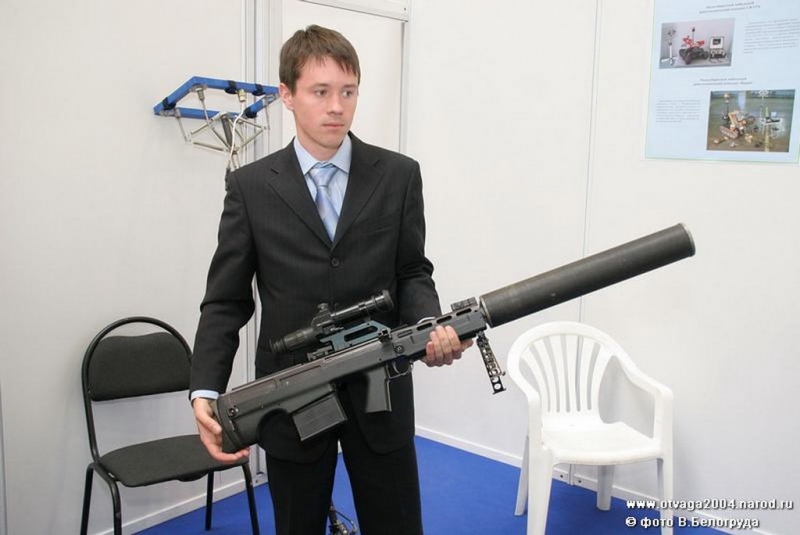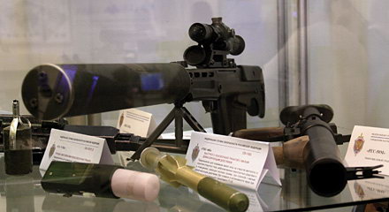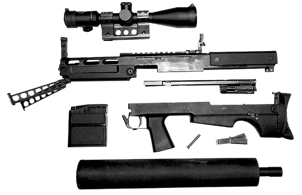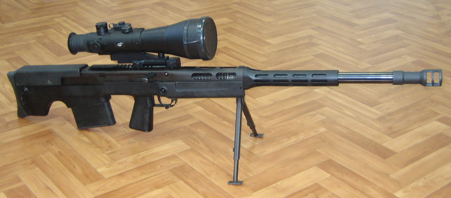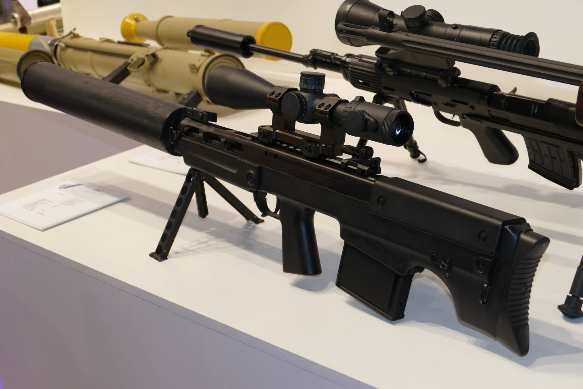 12.7mm VSSK“Vychlop”微声狙击步枪是由俄罗斯仪器设计局(KBP)研制的特种武器,VSSK是“大口径特种狙击步枪”(Vintovka Snayperskaya Spetsialnaya Krupnokalibernaya)的缩写,而“Vychlop”则是俄文“排气”的对应英文拼写,对应的俄文则为ВССК“Выхлоп”。该枪首次公开是在2005年莫斯科的国际警用装备展上展出。后来VSSK正式定型为VKS,是“大口径狙击步枪”(Vintovka Krupnokalibernaya Snayperskaya)的缩写,炮兵总局的定型型号是6C8。