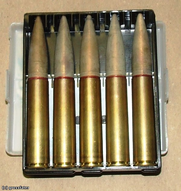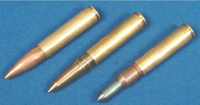 原型阶段的VSSK配用的专用亚音速弹,从左到右分别为:SC-130PT狙击弹,SC-130PT2狙击弹(实心铜弹头),SC-130VPS穿甲弹