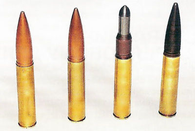 定型后的SC-130系列,从左到右分别为:SC-130PT普通弹、SC-130PT2狙击弹、SC-130VPS穿甲弹、SC-130PU教练弹