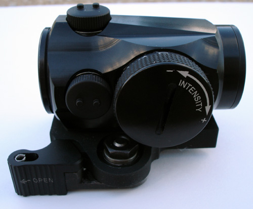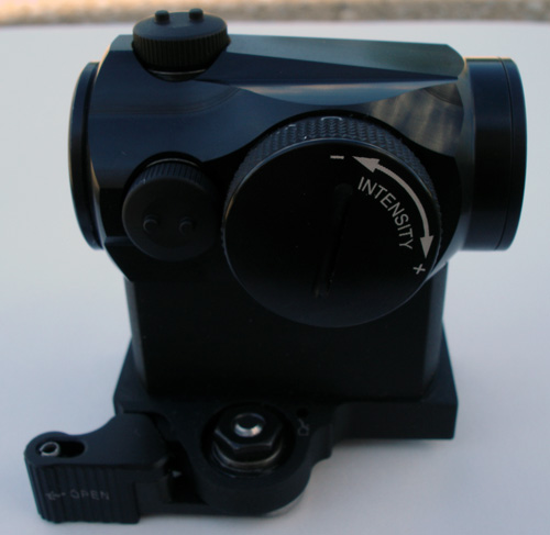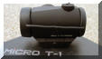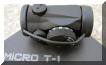 正如其名字所显示,Micro系列是目前Aimpoint公司的产品中尺寸最小的红点镜,长度仅62mm,高36mm,宽41mm,红点镜本身重84g,加上一个低矮的镜架重105g,与其他Aimpoint产品一样防水耐用,耗电量很低,据Aimpoint公司宣称一节CR-2032电池可用5年。这个系列中有Micro T-1、Micro H-1和Micro R-1等型号,外观上和性能上都没有明显区别,只是各自适合不同的用途。T-1是军警用的型号,可配合微光夜视装置;R-1是针对IPSC比赛手枪用的;而H-1则是猎用,实际上相当T-1的民用型。