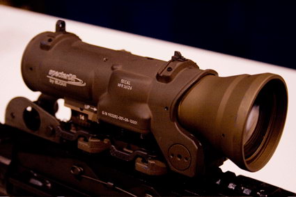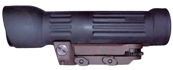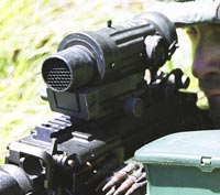 这种名为“幽灵红外”的热成像瞄准镜是ELCAN公司的新产品,实际上就是个外壳为筒形的轻型热成像夜视装置,但通过ELCAN公司的瞄准镜座可以安装在武器上使用。这种电子产品并不仅仅具有军事用途,还可以当成普通的手持式热成像装置使用,装置上还有标准的视频输出接口,只要用普通的连线就可以直接把图像传送到监视器上。