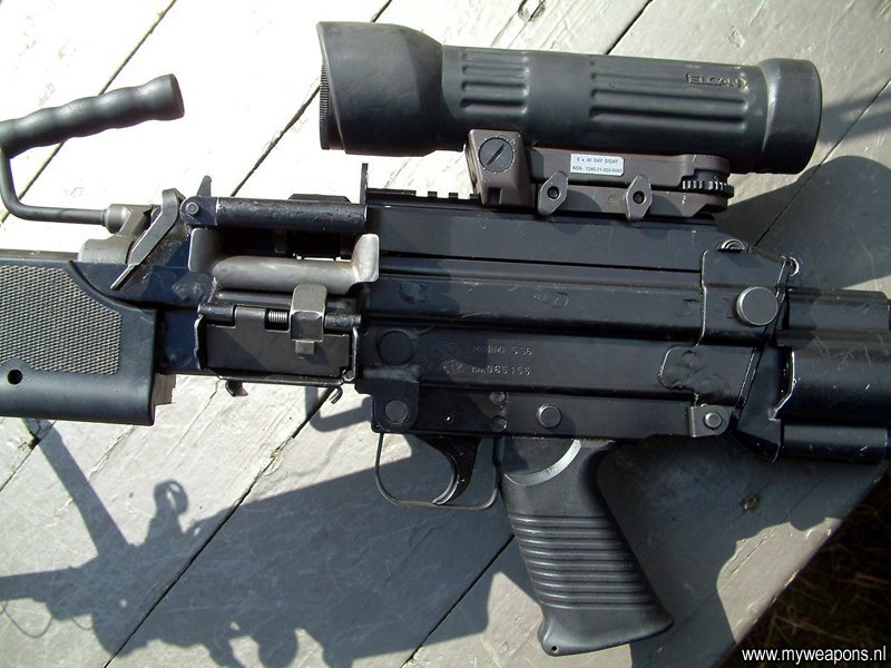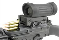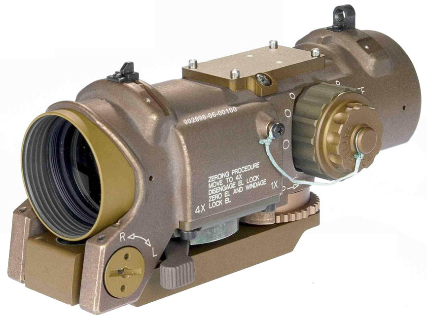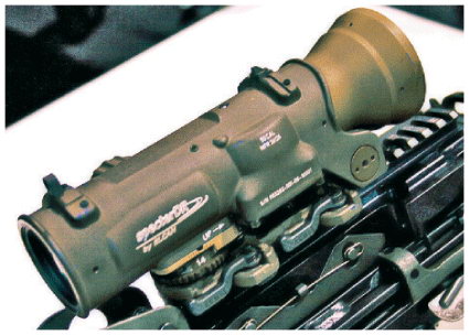 美军经过对ELCAN Specter OS3.4瞄准镜的试验,也发现这种瞄准镜很适合用在轻机枪或通用机枪上,能有效发扬机枪远射程火力的优势,因此也大量装备了ELCAN瞄准镜。不过美军所装备的型号作了一些改进,包括在物镜前加上防反光装置,取消了后备机械瞄具等,并重新命名为M145 MGO(MachineGun Optic,即“机枪光学瞄准镜”)。另外还专门为卡宾枪及机枪配用了两种不同的分划。加拿大军队也在C7步枪、C8卡宾枪和C9轻机枪上大量使用ELCAN瞄准镜,但从阿富汗的反馈来看,有些加拿大士兵对ELCAN的镜架很不满,认为不耐操,容易坏。