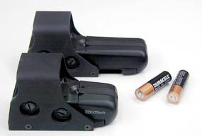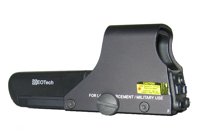 由于551使用比较麻烦的N-TYPE电池,因此EOTech公司推出了使用两节市面易见的AA电池的552系列。不过也由于AA电池比较长一些,因此552的外形是最长的,尺寸为131×49×60mm,重309克。另外还有为民间提供的512型,外形上和552基本一致,只是长了一点点,但最大的区别是没有配合夜视仪的红外分划功能。