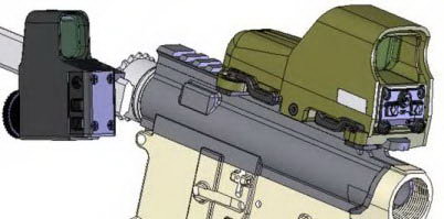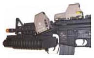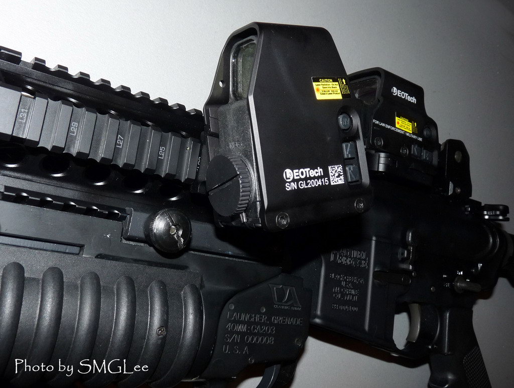 M40GL是EOTech专门为M203这类榴弹发射器准备的像限仪式全息瞄准镜。尺寸66×43.1×86.4mm,重255克,使用一节CR123A电池。