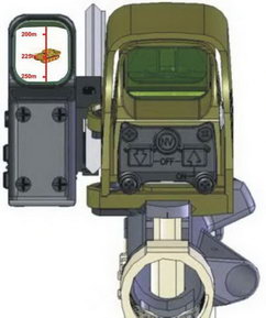 EXP系列比起XPS系列就是使用了带快拆的增高座,和XPS系列一样,EXPS系列也分有EXPS2和EXPS3两大类,前者无夜视分划,后者有夜视分划。另外EXPS系列还把开关从背面移到左侧。该系列也是使用一节123A电池,尺寸为91×61×71mm,重317克。有适合不同武器的EXPS3-0、EXPS3-2和EXPS3-4等型号,其中用于M4卡宾枪的EXPS3-4型的分划上还有4种不同距离弹道高的瞄准点。