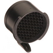 killFlash® ARD其实也是采用传统的遮阳原理,但结构和材料却是新颖的。其结构是在一个短铝筒内装上一个用树脂材料加强的Nomex蜂巢形多孔圆板制成的,看起来就像是一个蜂巢形多孔滤光板。当光线透过这些小孔射到镜面上时很难形成强烈的大面积反光,就如同在镜片前装上无数个微小的遮阳罩一样,不过这个哥伦布竖鸡蛋式的想法和制作材料都已经申请了专利。