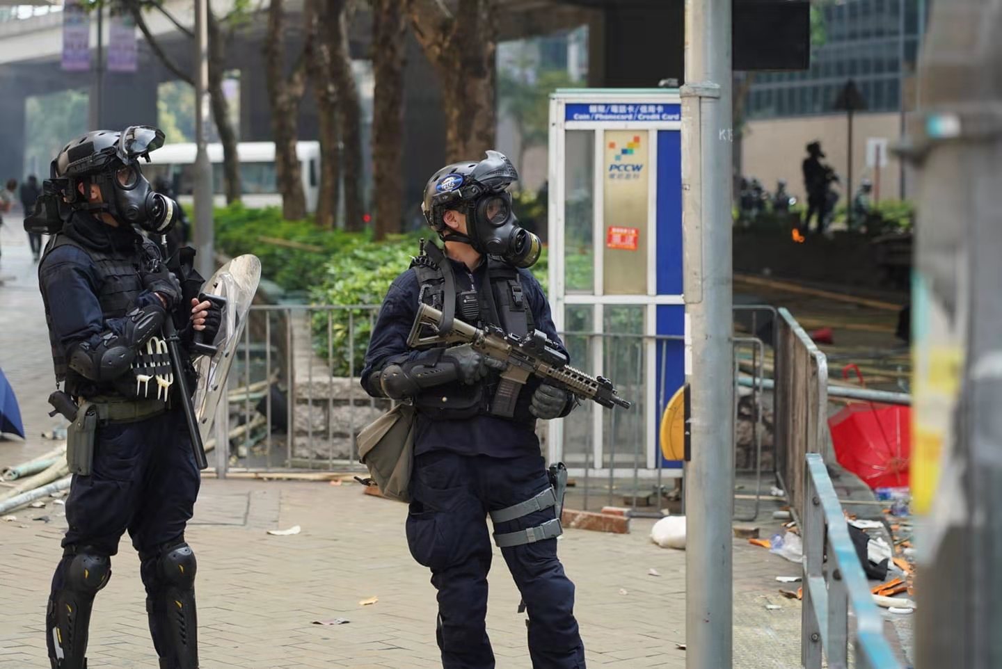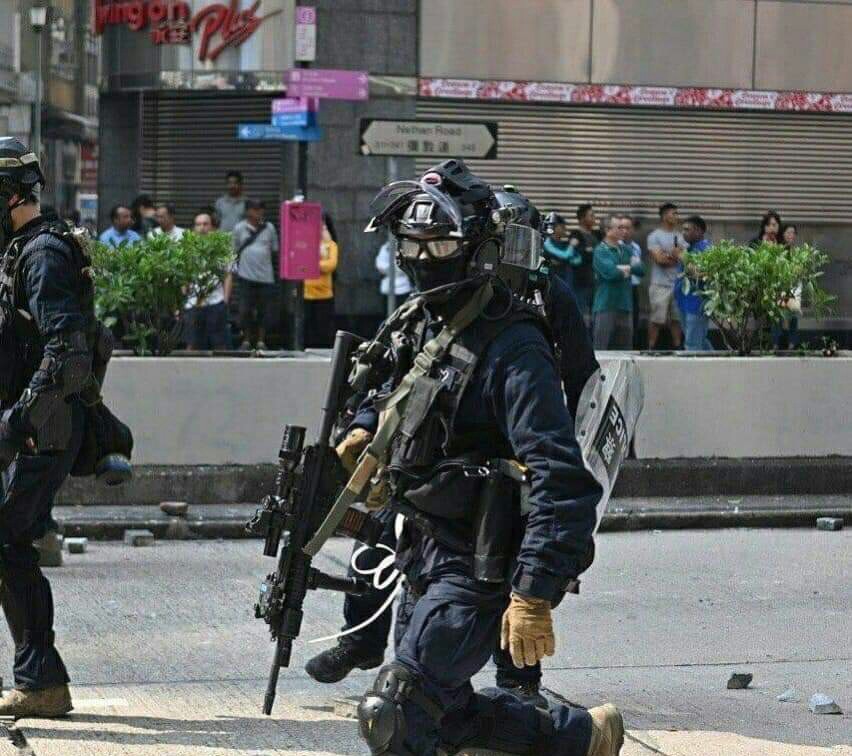 2019年香港黑暴事件中,携带SIG516上街执勤的香港警察