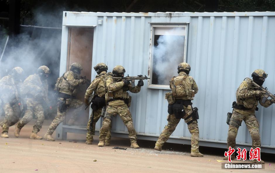 2016年1月10日香港警察学院开放日上,表演的飞虎队员使用了SIG516
