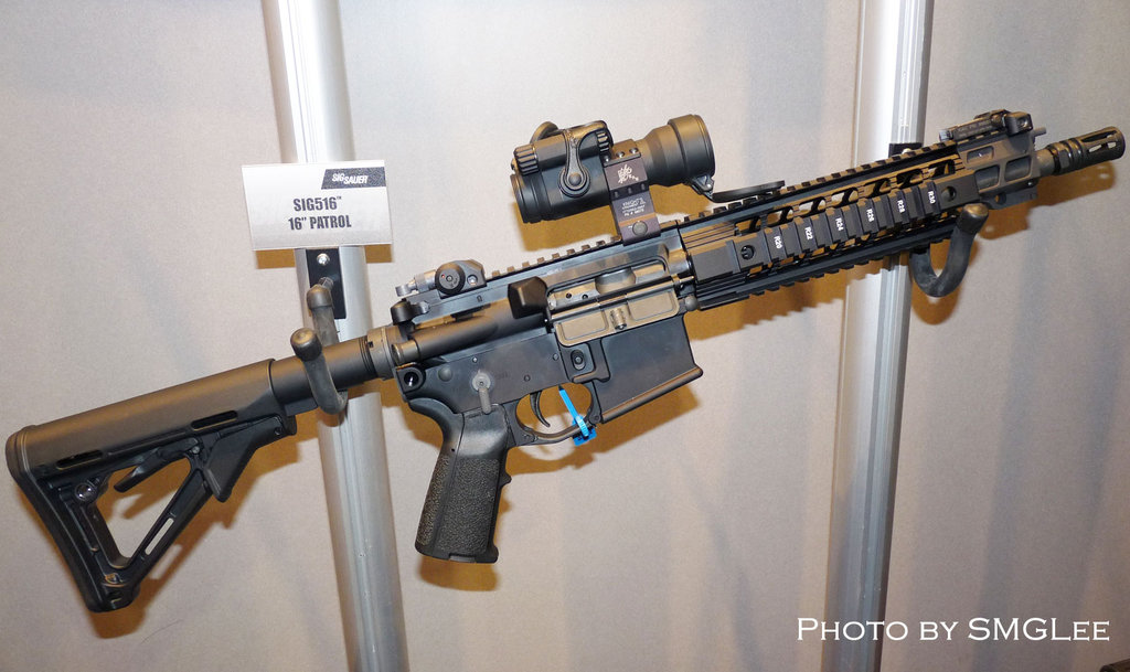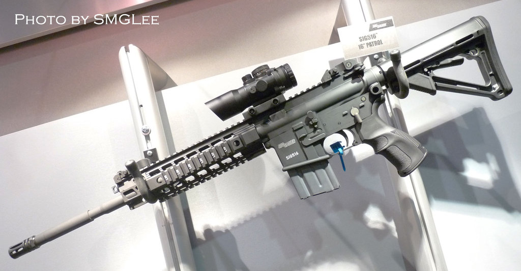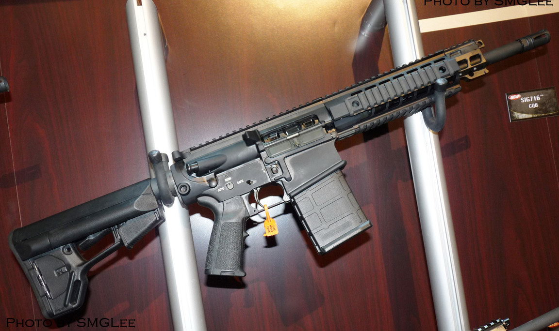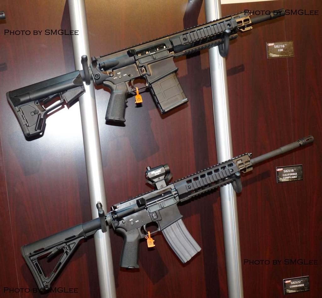 2010年的SHOT SHOW上,继续有更多的公司加入活塞式AR的大混战中。连SIG也不甘寂寞地加入这团混战当中,推出了SIG516和SIG716两种口径的型号。早前的SIG 556就是操作方式向AR式接近的SG55x系列,而现在干脆就是做正宗AR式,只是采用了与鲁格SR-556相似的带气体调节器的导气活塞系统。军警用型的下机匣分别有全自动或3发点射两种类型,而民用型只能单发射击。