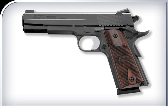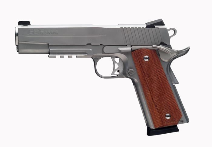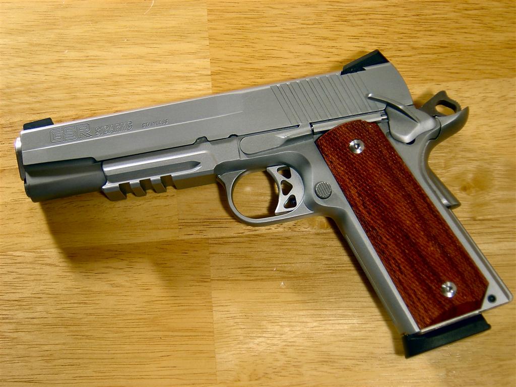 由于1911式手枪至今仍然很受欢迎,刚进入2003年,就有传闻说SIG SAUER也打算插一脚进来分一杯羹。果然到了2003年11月6日,SIG SAUER正式公布他们生产的1911式手枪,命名为“GSR”或“花岗岩”(Granite)系列。根据宣传,GSR手枪是半手工生产的高精度武器。与目前流行的1911手枪一样,GSR维持1911式的基本结构和动作原理,但增加了击针保险。底把前方有皮卡汀尼导轨,枪管为比赛级,采用Novak瞄具,弹匣容量8发。扩大保险柄。但套筒的外形故意带有一些SIG SAUER P22x手枪的特征。