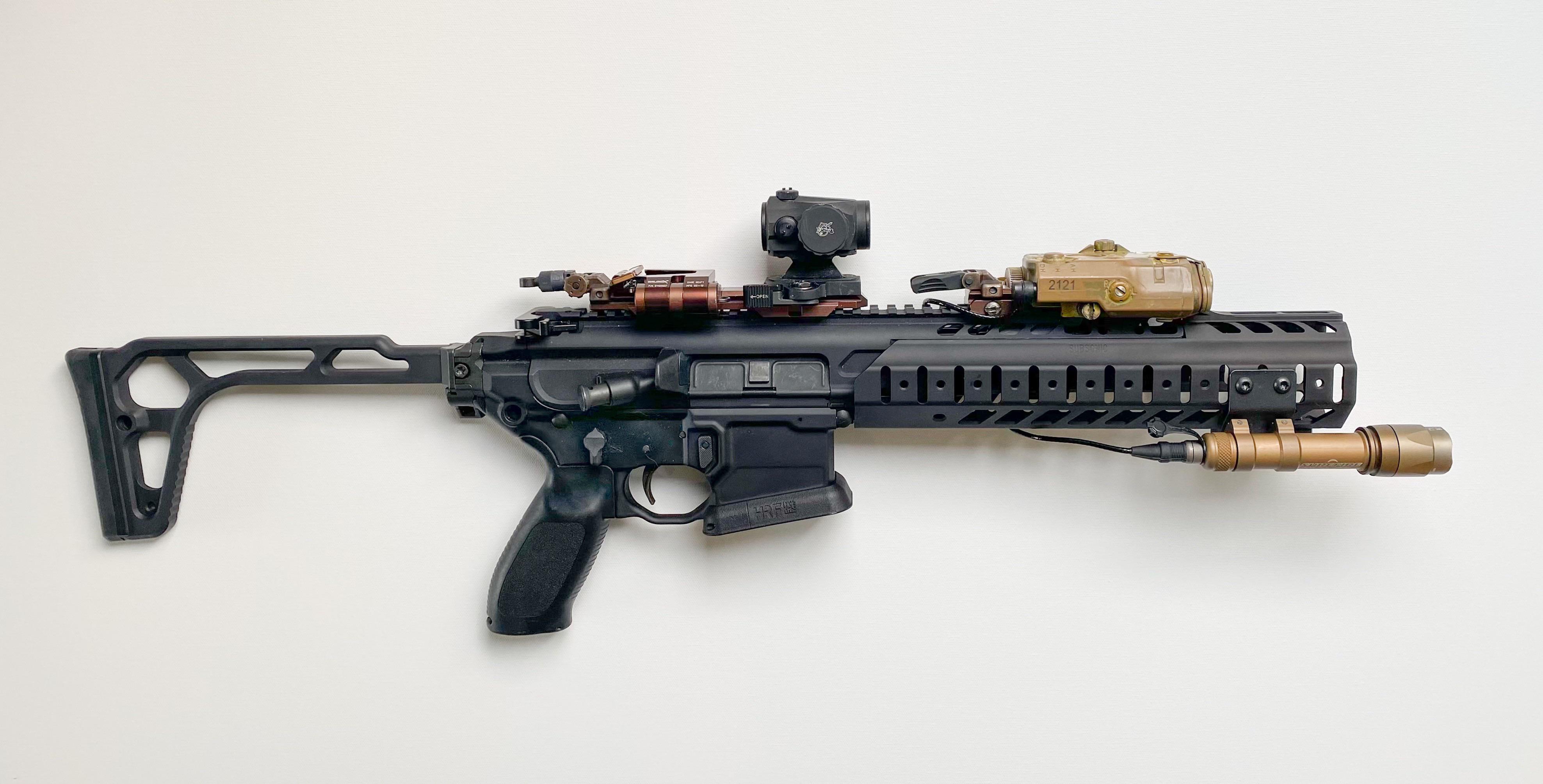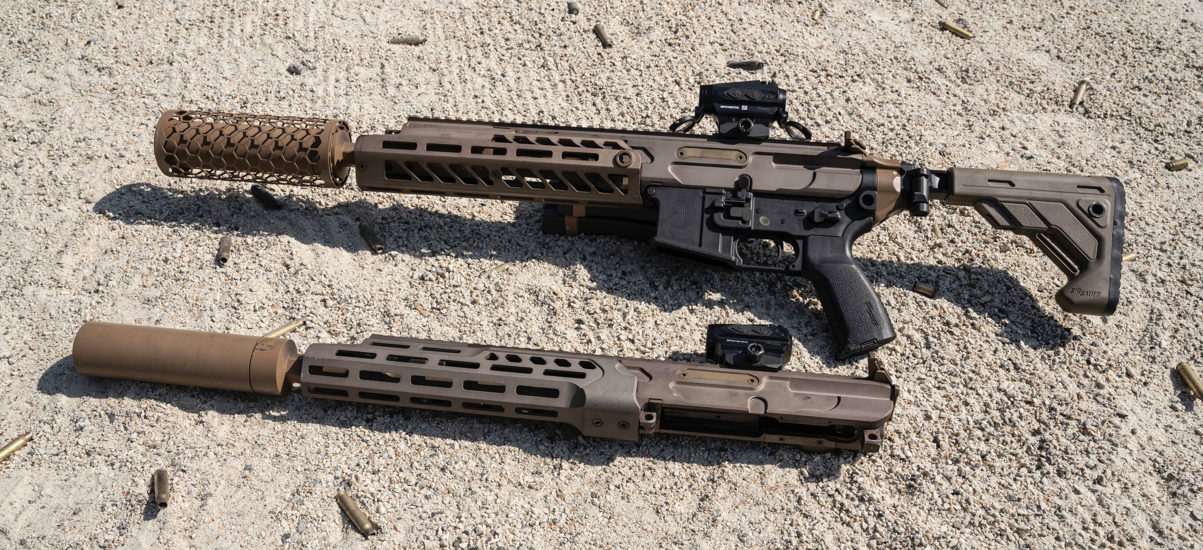我重新梳理了一下相关的信息,大致得出如下猜测:首先USSOCOM提出了一种发射.300 BLK弹的消声武器设想,但并没有正式进行招标。而SIG-SAUER根据这个设想,基于AR15的平台和之前MPX冲锋枪的一些设计,开发出一种新的卡宾枪SIG HALO,这种这种卡宾枪甚至可以将上机匣与AR15的下机匣结合使用以满足符合美军士兵操作习惯的需求,而重新设计的自动机则是为了能够让枪托折叠以满足尺寸紧凑的需求。但可能SIG觉得即使被USSOCOM选中,这种专用武器的订单量也不会太大,所以就在此基础上扩展出一整套新的枪族MCX。当USSOCOM为这种设想起名叫LVAW后,SIG就立马起名叫MCX LVAW“黑曼巴蛇”,而第一代MCX则已经形成自己的设计,比如MCX的护木与MPX是不通用的,但LVAW的护木侧是延长的MPX的护木,因为该枪根本就是HALO。然而之后USSOCOM并没有正式开展LVAW项目,也许是因为USSOCOM一直没确认自己真正想要什么,但TIER 1单位看到SIG的成品就急着要(特别是三角洲,他们不愿意使用MP7),于是只有TIER 1单位少量采购了一些MCX LVAW来使用(在搜索资料时也看到有文章提到是USSOCOM自己用MCX来改装的,但不清楚是不是真的),但因为没有经过正式的武器选型和定型流程,所以就没有正式的武器型号,而只称之为LVAW。而当USSOCOM把自己的真正需求弄清楚了,就发现他们其实并不需要买一支新枪,而只需要买一个可以改装M4A1的上机匣,甚至不需要新口径,最后衍生出SURG这个项目。