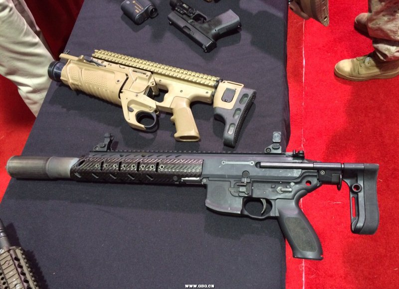 战甲网记者在2016年SHOT SHOW上看到的各种MCX卡宾枪,及配套的钢制或钛合金制消声器