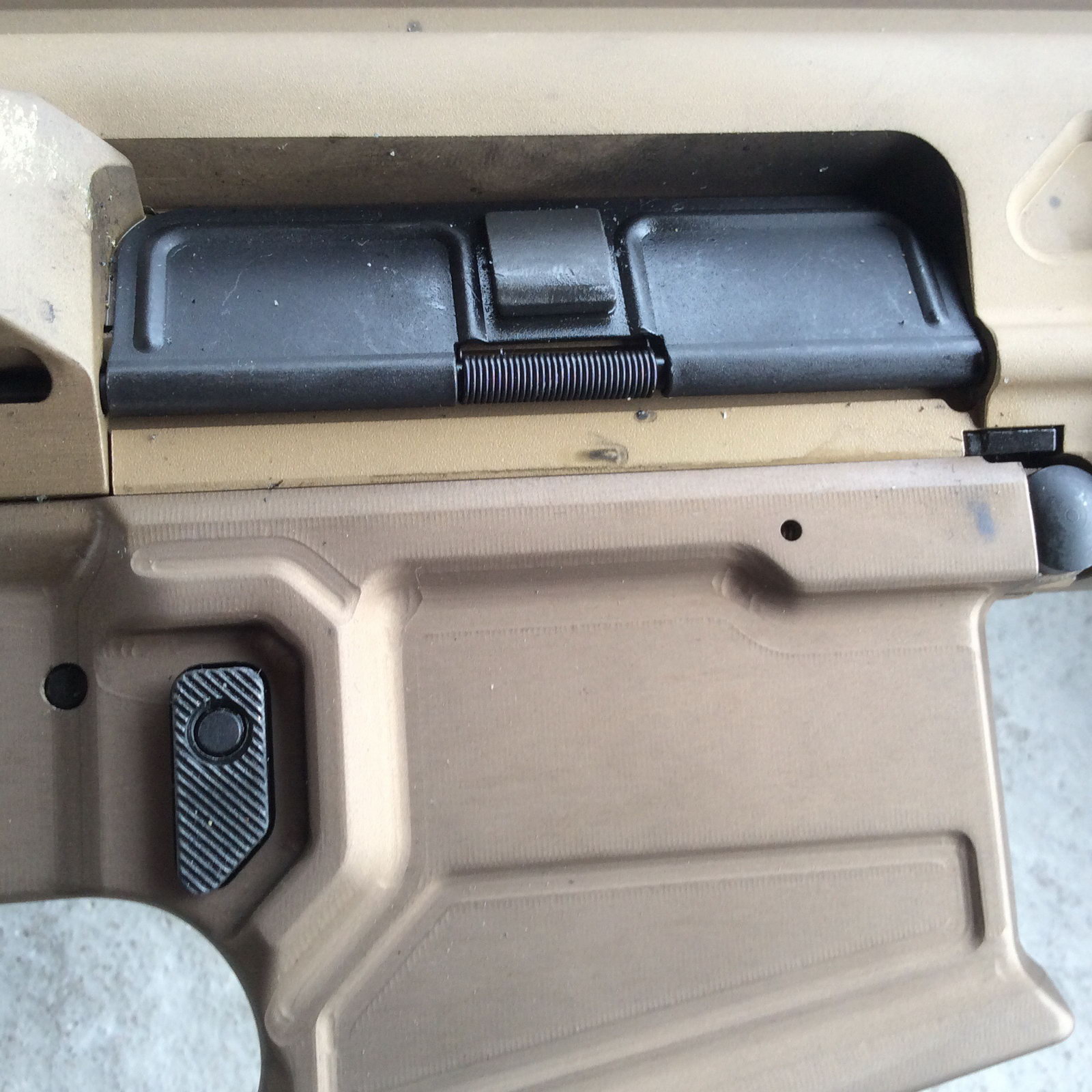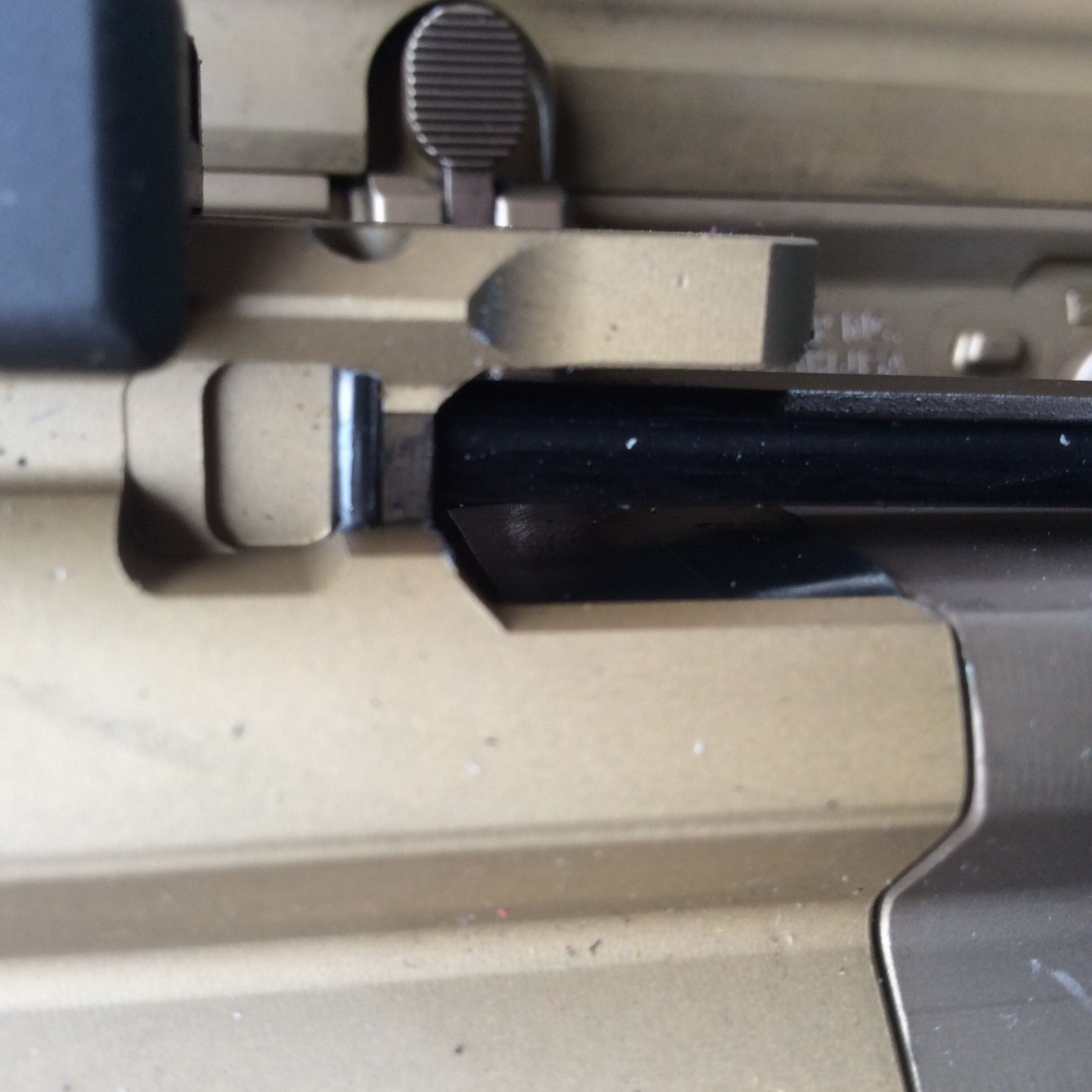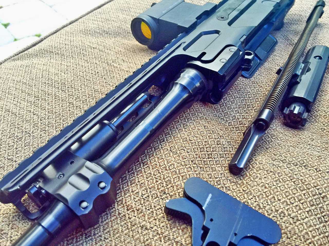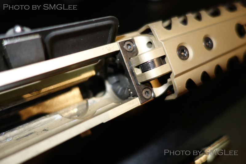 由于发射的枪弹比较长,因此现机匣重新拉长,这下操控开关的感觉与传统AR更一致了。事实上,尽管MCX有自己的下机匣,而且MCX的主要部件(枪机组、枪管等)不能与AR15的相同部件互换,但完整的MCX上机匣却可以直接安装到任何军规AR15的机匣上,但由于MCX的复进簧是在上机匣内,所以更换AR下机匣时,还需要装上一个专门设计的适配器来安装MCX的枪托。