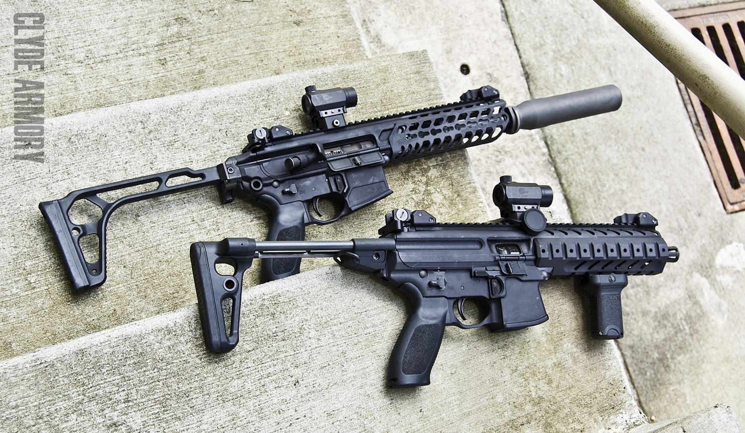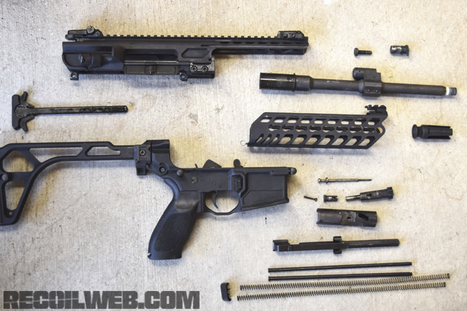 无论哪种口径,MCX卡宾枪都有3种型号,一种是配9英寸枪管的短枪管步枪型(SBR),一种是16英寸枪管的卡宾型,并有配两种不同长度的护木;还有一种是只能半自动射击且没有枪托(或安装SIG Brace枪托)的“手枪型”。而枪托有多种类型,都是和MPX冲锋枪通用的折叠式或伸缩式枪托。不过很显示,.300 BLK口径的短枪管型配消声器和侧折叠枪托才是向特种作战部队推广的重点,而其他口径其他型号可能更多是面向其他市场。其实为了便于生产不同的配置,MCX的机匣尾部设计成一段垂直的皮卡汀尼导轨,并有一个螺栓孔用于锁紧,枪托就是通过这段导轨安装上去,所以要更换不同的枪托也是很容易的事。