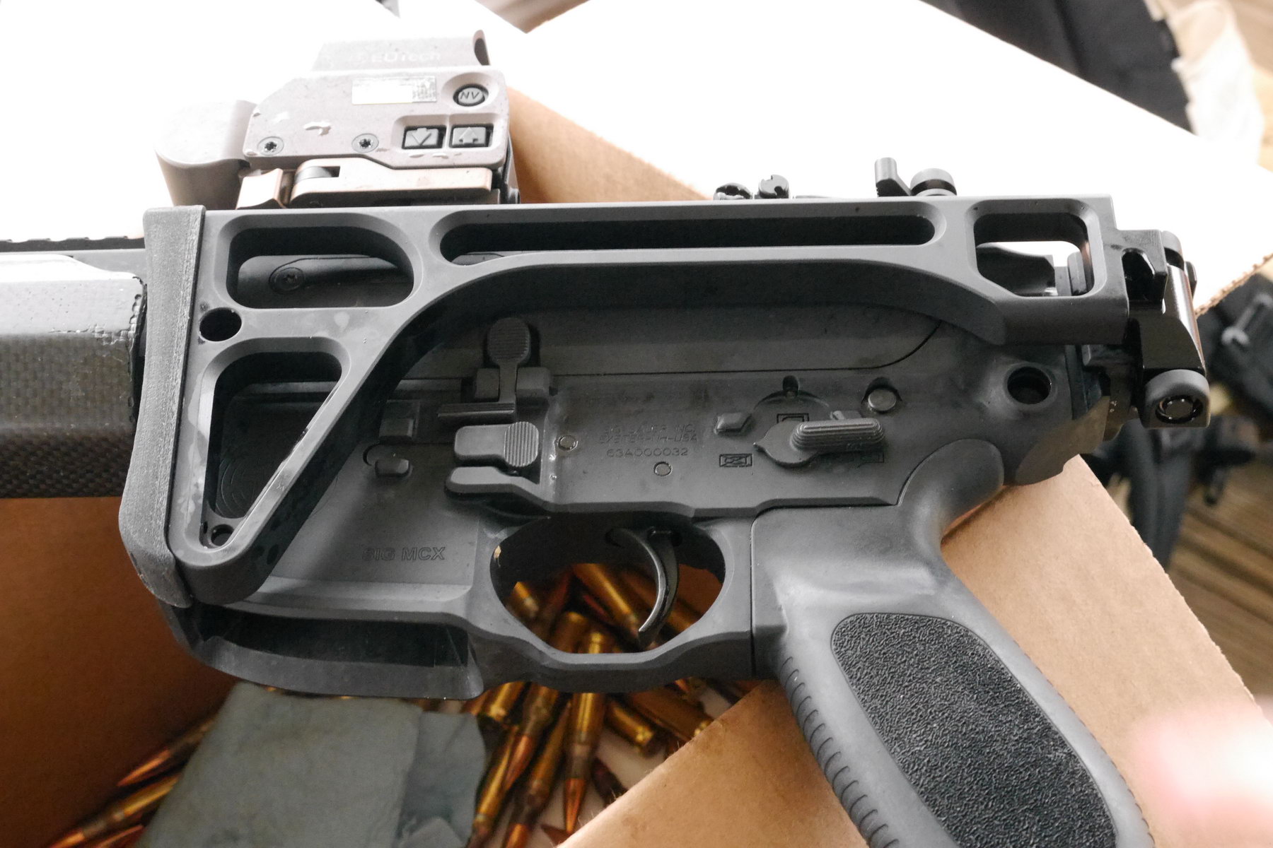 2014年SIG提供的MCX体验活动中,出现了新的骨架型折叠枪托,也是与MPX冲锋枪相同的
