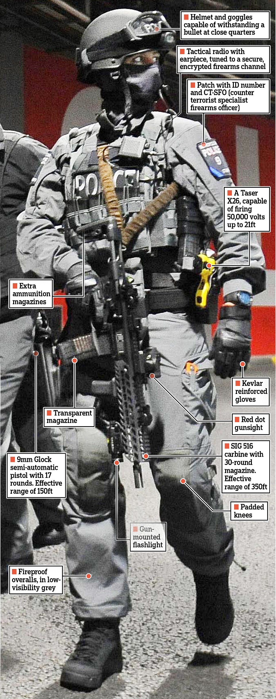 ![]() 《每日邮报》中对CTSFO队员的装备介绍 |