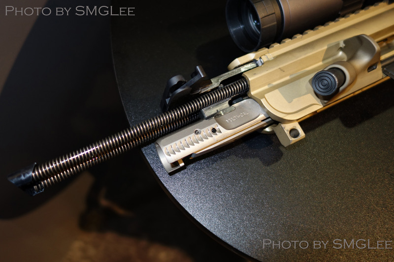 MCX卡宾枪的枪机头是AR式的设计,整个动作机构是MPX冲锋枪的口径放大版