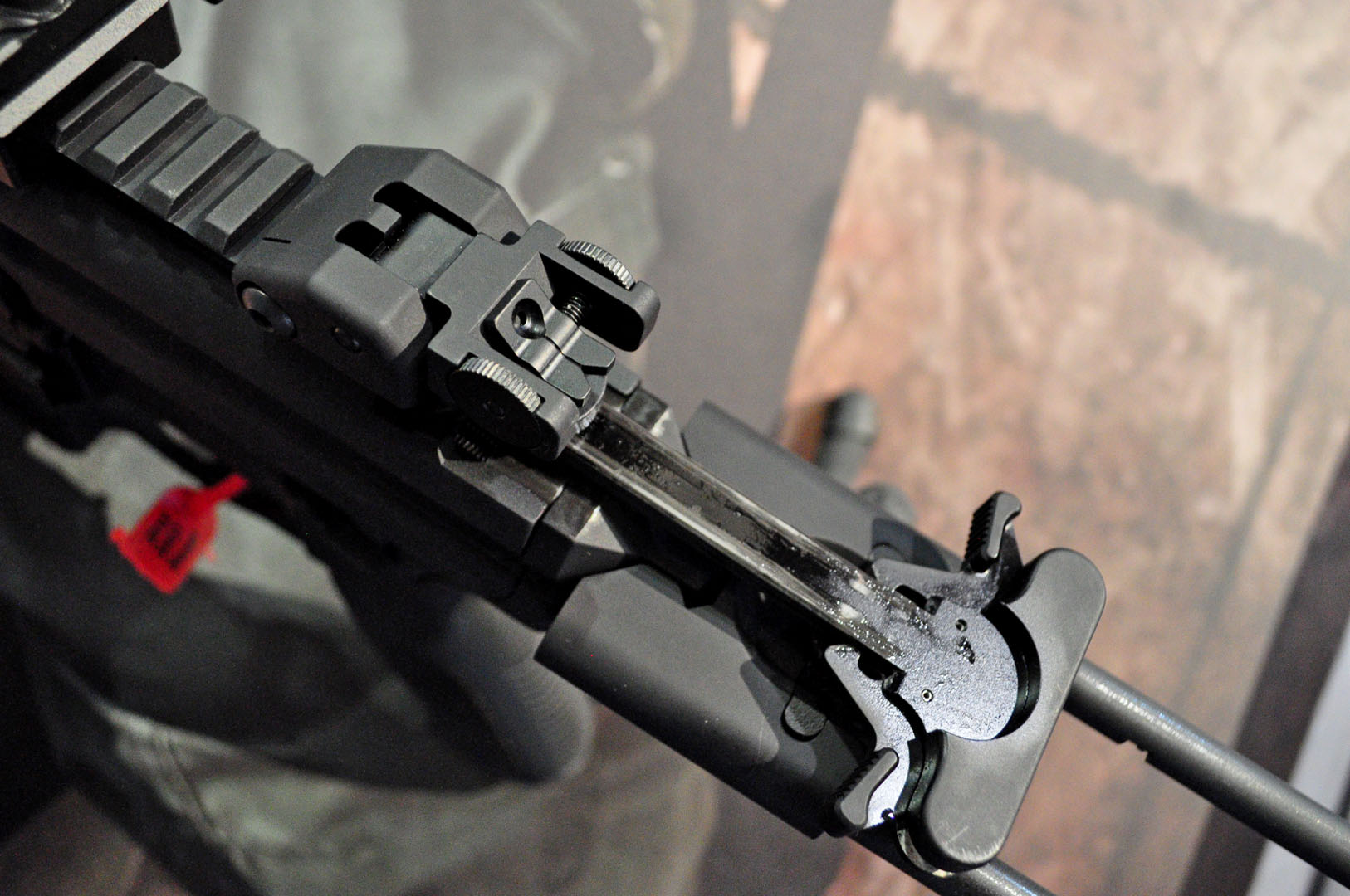 另外,虽然有宣传资料声称MPX采用导气式原理是为了在转换不同口径时依然能可靠地运作,因为不同口径枪管上的导气孔直径是不同的,当更换枪管组件后,导气装置的参数就自然能与所发射的枪弹匹配。但事实上,由于弹底窝的不同,在转换口径时,枪机组也是需要更换的,假如仍然采用采用自由式枪机,即使MPX所发射的3种弹药的膛压都不一样,但也可能通过更换合适的枪机组和复进簧来解决可靠性问题。