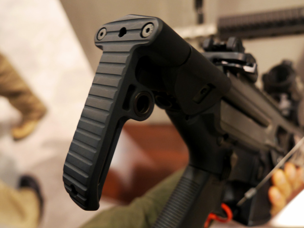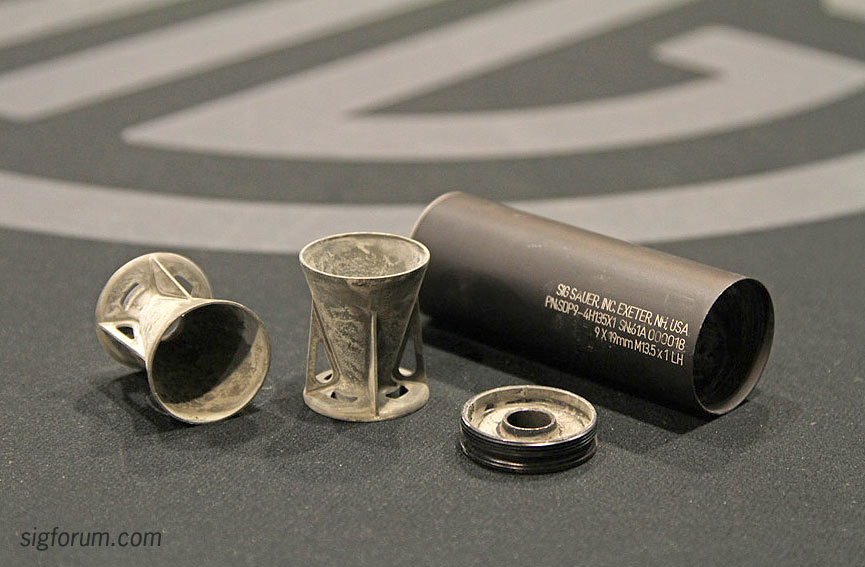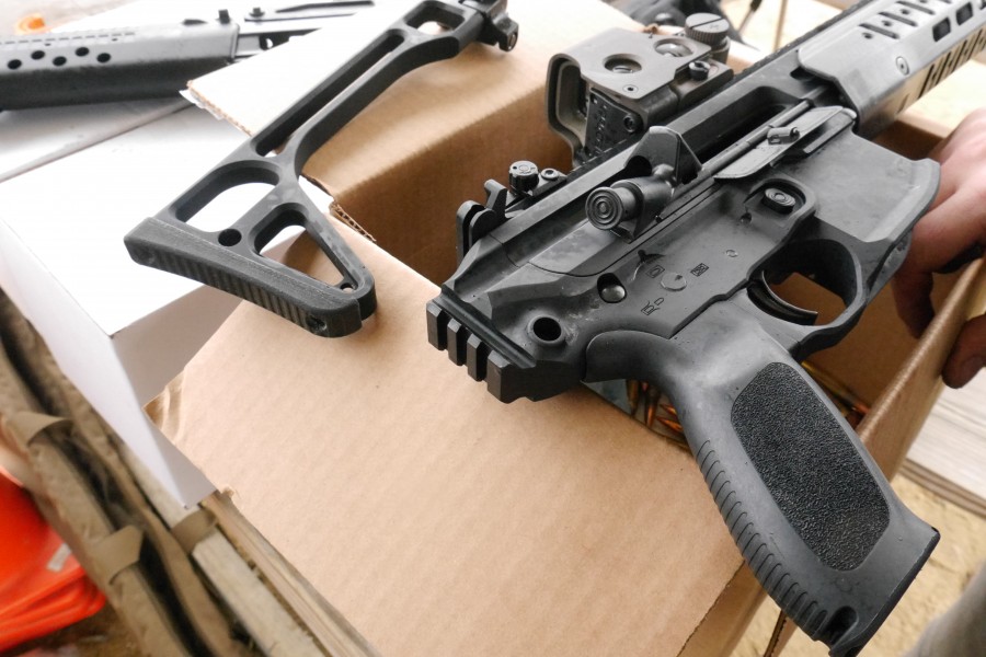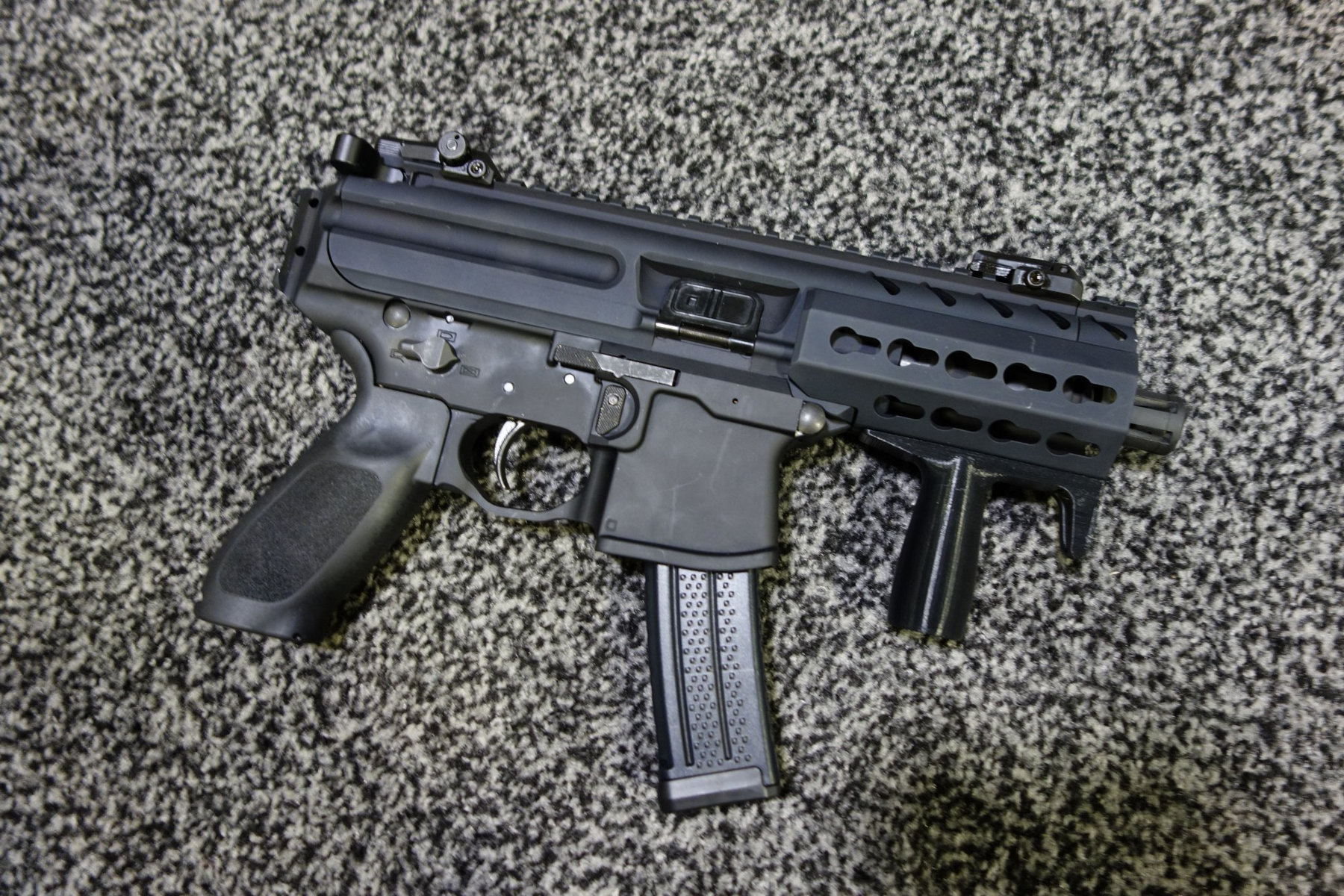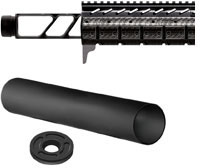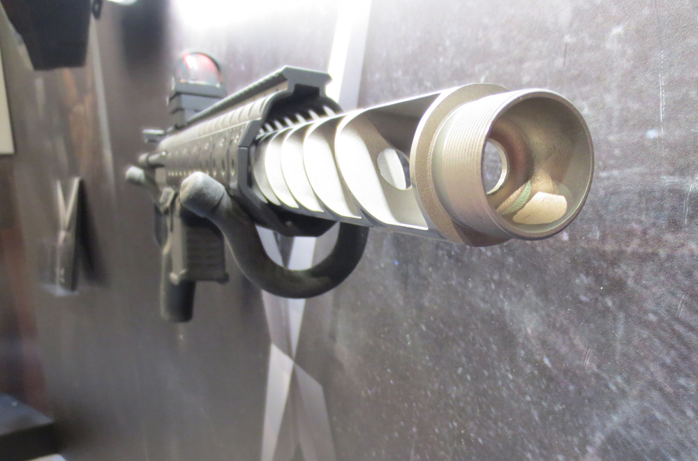 另外半自动卡宾型的SIG MPX-C的枪管也比较特别,其实是采用与冲锋枪型一样长165mm(6.5英寸)的真枪管,再加上242mm(9.5英寸)长的枪口装置,来美国枪法中规定的16英寸总长。这个枪口装置是骨架形,看上去像个拆卸了外壳的消声器,事实上SIG还提供有一个铝合金圆筒配件可以套住MPX-C的这个骨架形的枪口装置,这样看上去就真的像个消声器但没有多明显的消声效果,所以即使在禁消声器的州也不违法。不过在2014年底ATF认定SIG的Brace枪托抵肩时不合法(但不抵肩的射击动作就合法