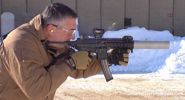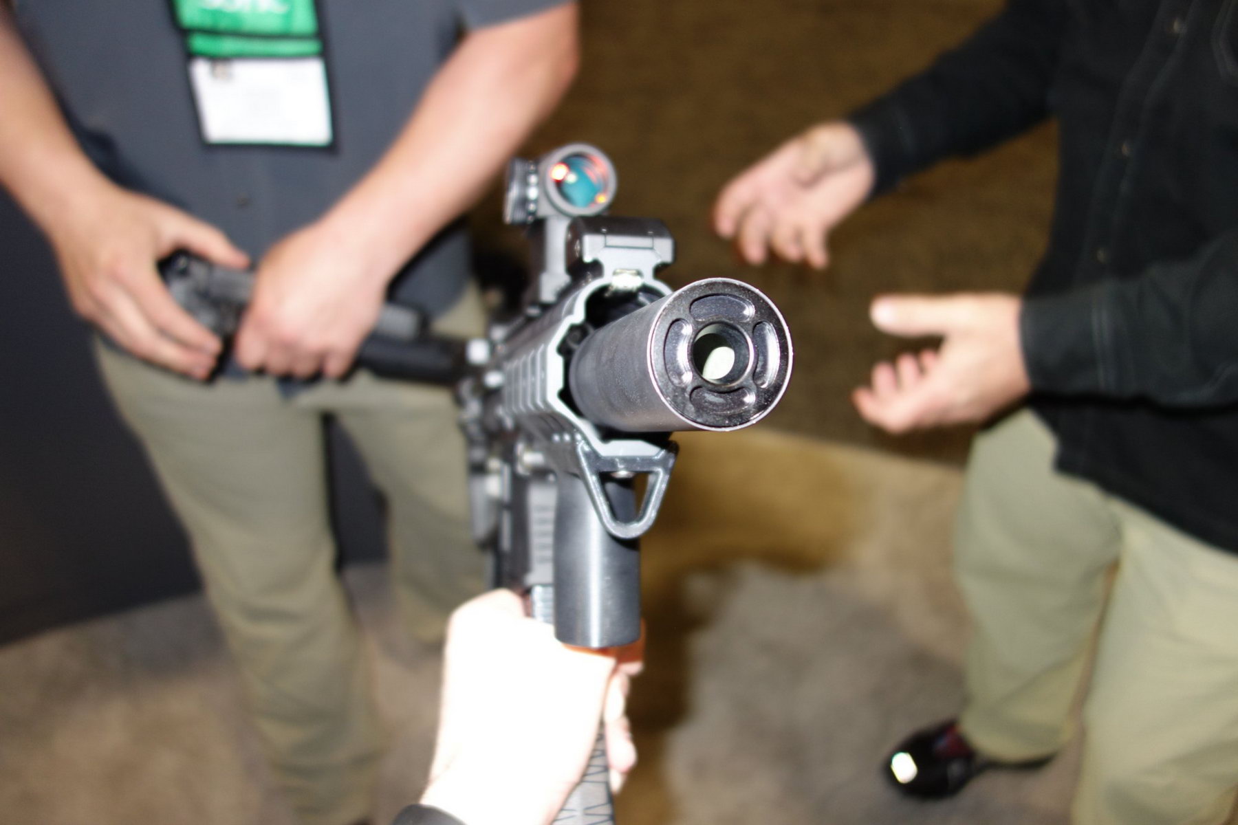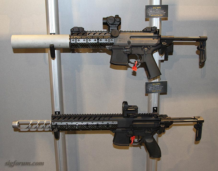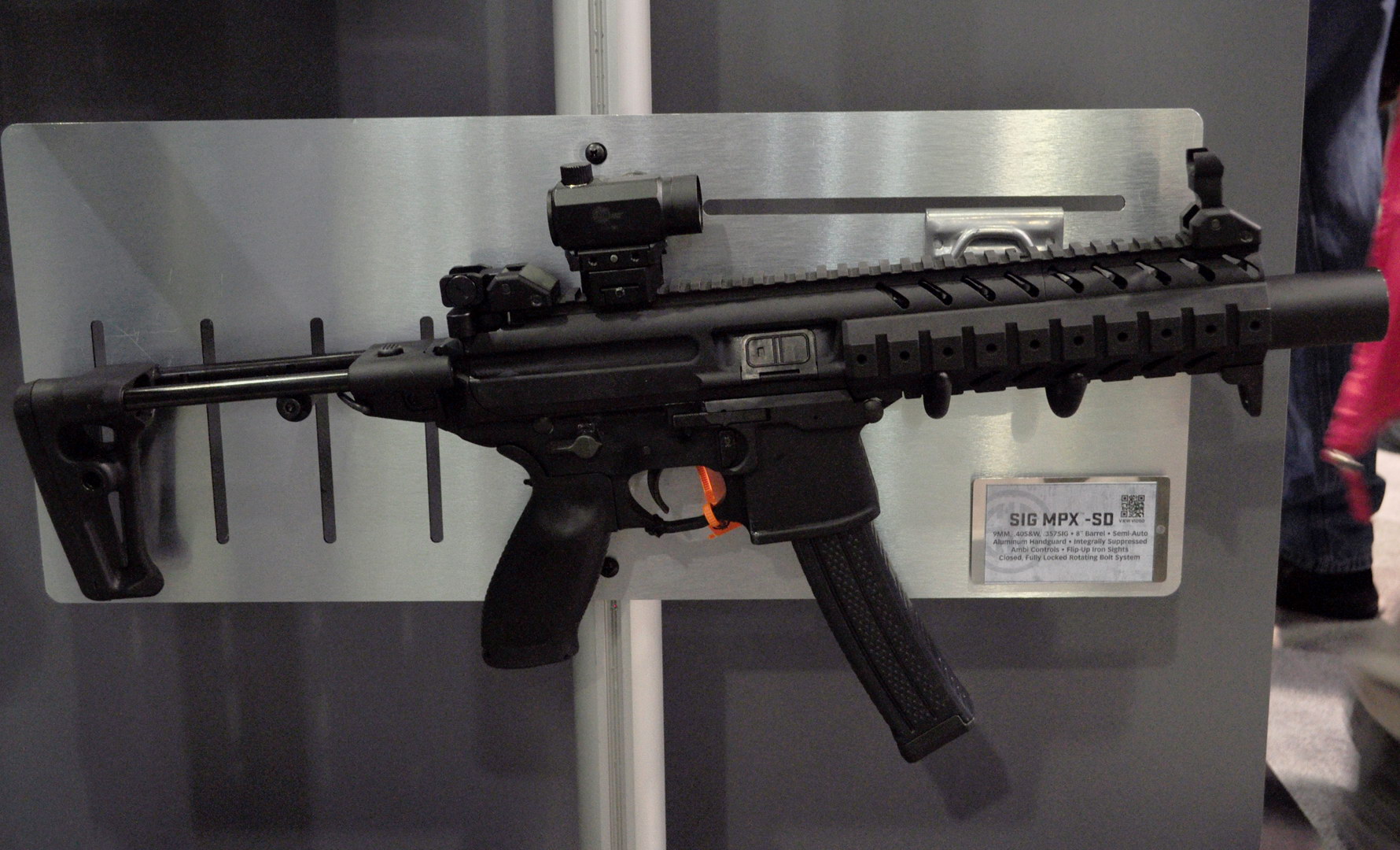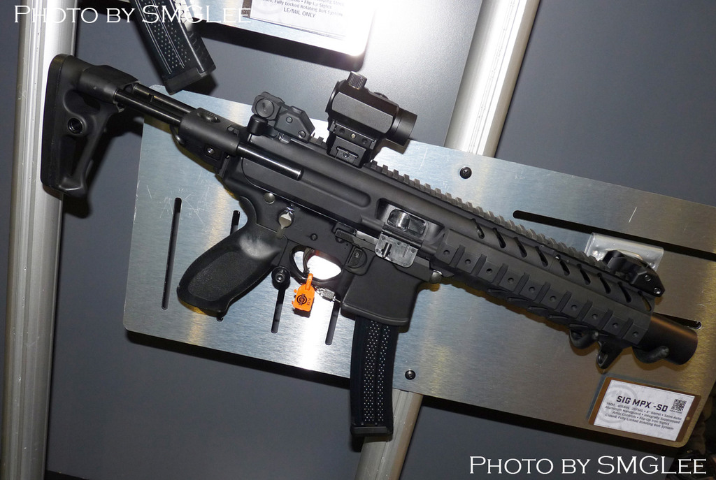 在2015年SHOT Show上展出的安装了短消声器的MPX-SD冲锋枪,因而消声器被包裹在护木内