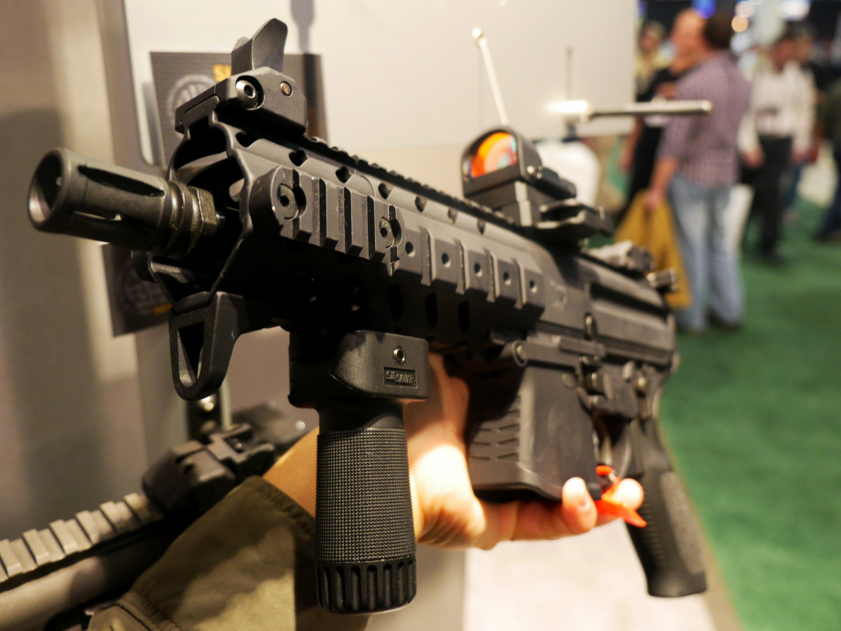 在SHOT Show 2014上展出的各型MPX冲锋枪、手枪