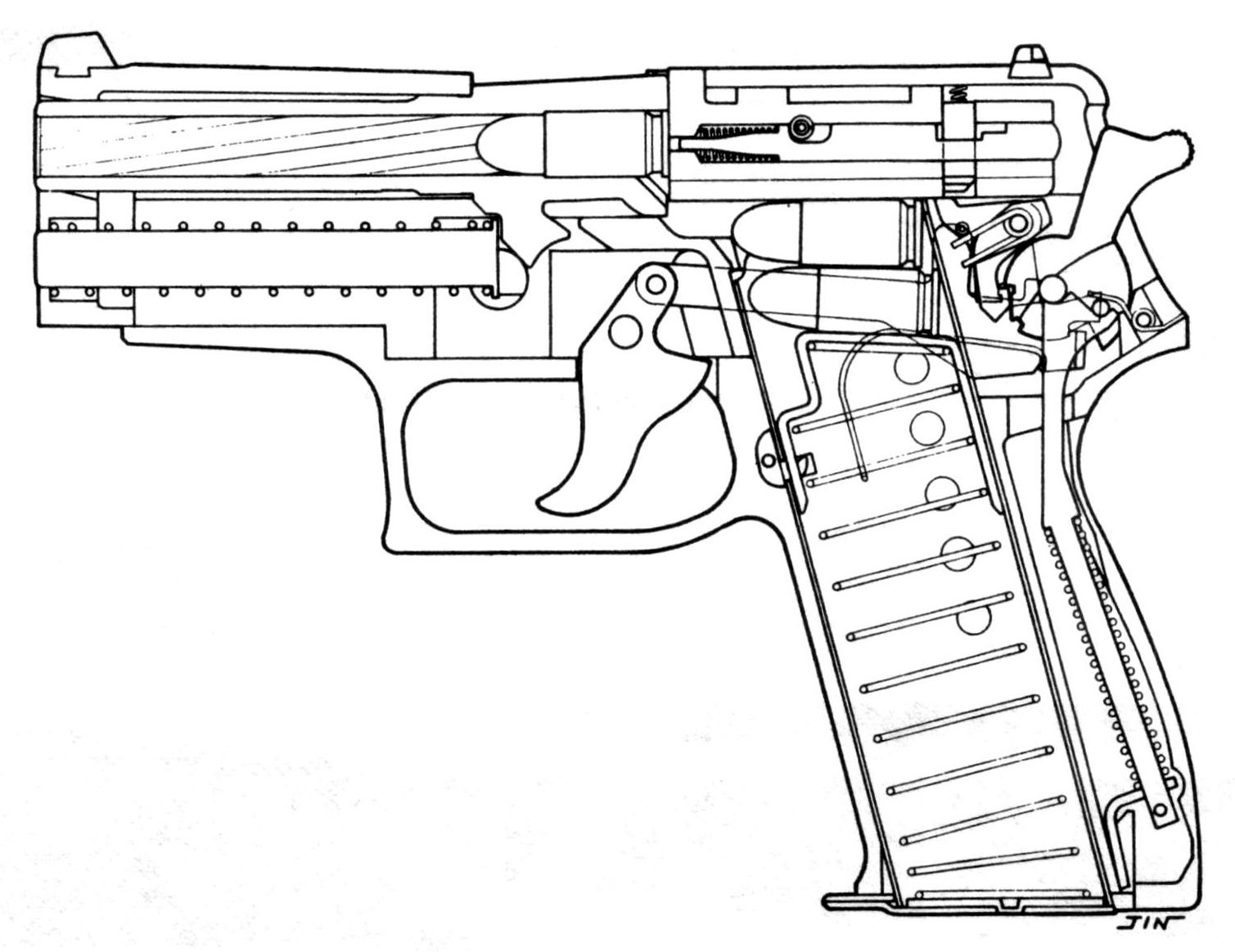 P225是一种非常成功的警用手枪,不只是西德的一些州,包括瑞典、瑞士和许多其他的欧洲警察都有采用,P225的销量超过了50万把。据说有一些特别的订货是专门按照客户要求,把弹匣卡笋改到欧洲传统的握把后下方式,但数量并不多,我也没有见过这种P225的图片。