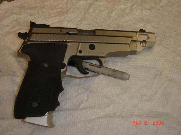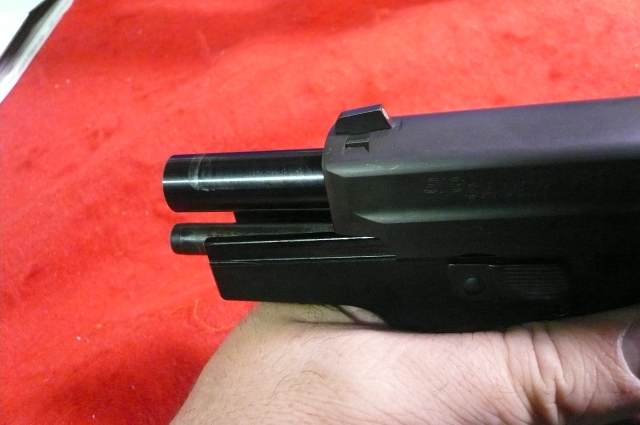 .40S&W手枪弹是当时的潮流趋势,特别是在执法机构当中,已经大量使用发射.40S&W弹的半自动手枪了。.40S&W手枪弹的具有比9mm手枪弹较大的停止作用,而尺寸却比.45ACP手枪弹小,方便使用双排弹匣的设计,此外SIG-Arms公司还专门开发了一种新的.357SIG手枪弹。.357SIG手枪弹其实就是把.40S&W的弹壳改成瓶颈形,并装入一个.357弹头,这样就增大了弹头尺寸与发射药容量的比值,使.357SIG弹同时兼具有.357SIG马格南手枪弹的威力和.40自动手枪弹的小尺寸的优点。但无论.40S&W弹还是.357SIG弹,其压力都比9mm弹大得多,而且还增加了套筒后坐的速度和后坐力。所以P220系列原有的碳钢冲压套筒已经不适合,因此SIG公司才把套筒的生产工艺改为用不锈钢棒机加成形。