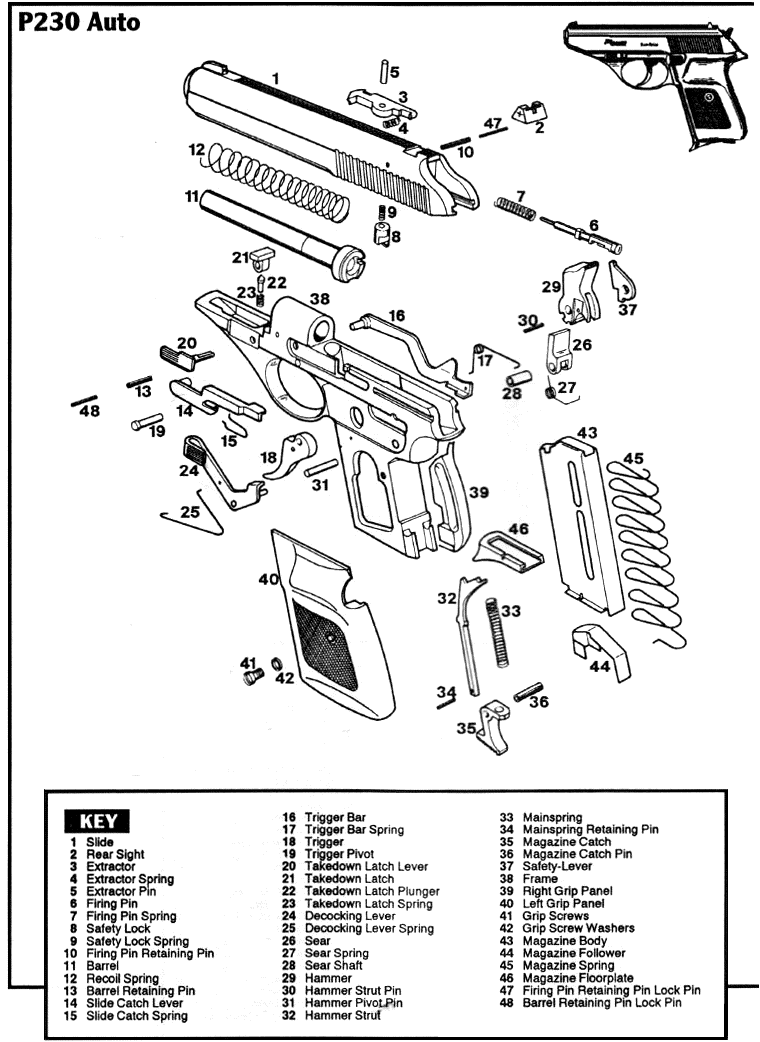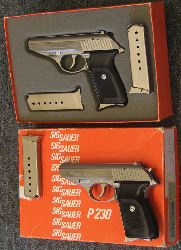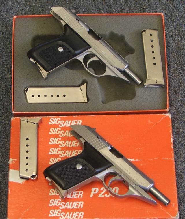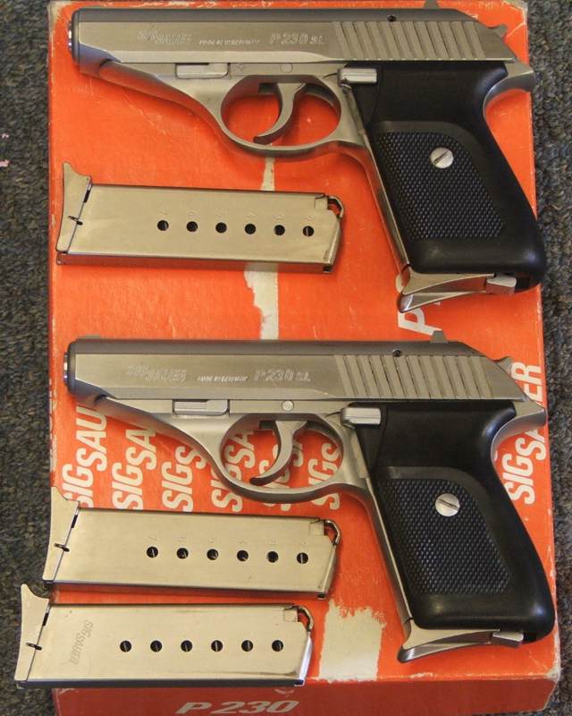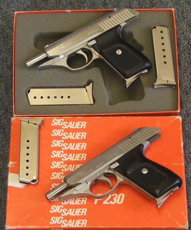 SIG-Sauer P230是1977年为警察研制的一种袖珍手枪,最初的目的是打算参加德国的警察手枪招标,但结果被采用的却是P225。P230与P220并不是同一系列,结构性能都大不相同。P230采用固定枪管设计,自由式闭锁原理。复进簧绕在枪管上,由于尺寸很小,容易隐藏,在瑞士、美国都有一些警察把该枪作为便衣警员的隐蔽手枪或后备武器,而日本警视厅也采用了P230作为佩枪之一。