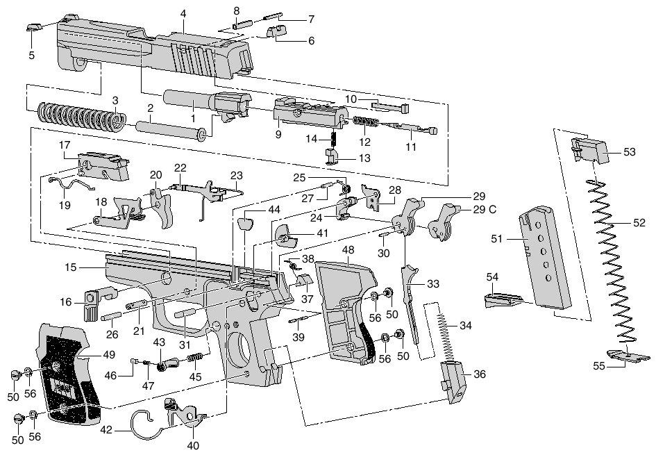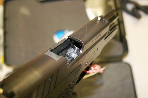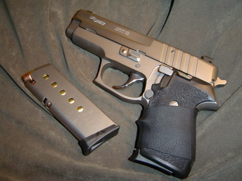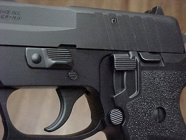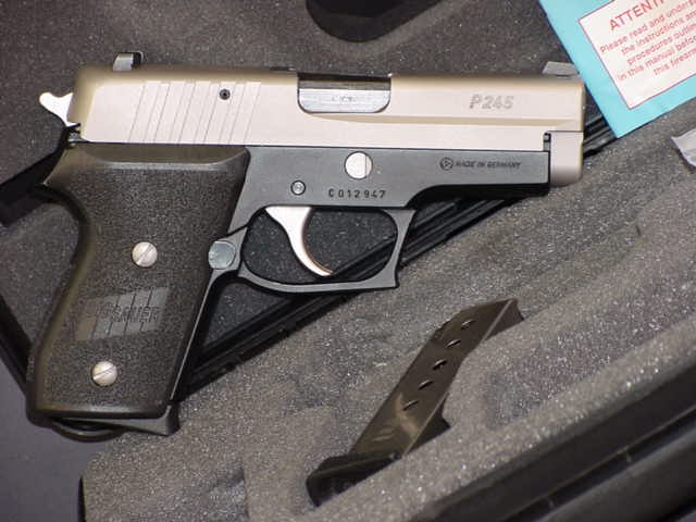 P245在1998年推出市场,发射.45ACP手枪弹,这是专门针对美国市场而推出的一种P220的缩小型,在结构、原理上与P220没什么差别,仅仅是把P220的外形缩小了而矣,就连套筒的生产也是采用冲压成形,而非近年来SAUER公司采用的机工成形工艺。作为一支隐蔽手枪来说P245多少是重了点,但该枪能较好地控制.45口径的后坐力。虽然P220本身也有.45ACP型,但尺寸太大,不适合隐蔽,而P245比HK USP45紧凑型还要轻小得多,很容易放在裤袋、腰包、挎包内,所以P245很适合便衣执法人员隐蔽携带和作为警察的后备手枪。