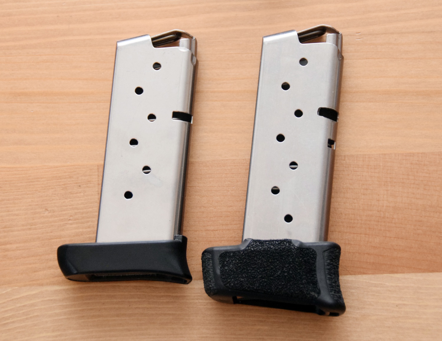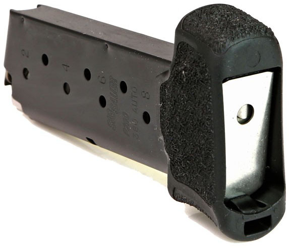 插入6发弹匣后握在手里时,拇指没有着力点,所以带指托的8发弹匣会更舒适