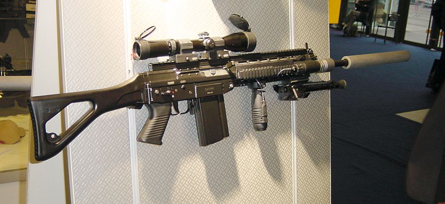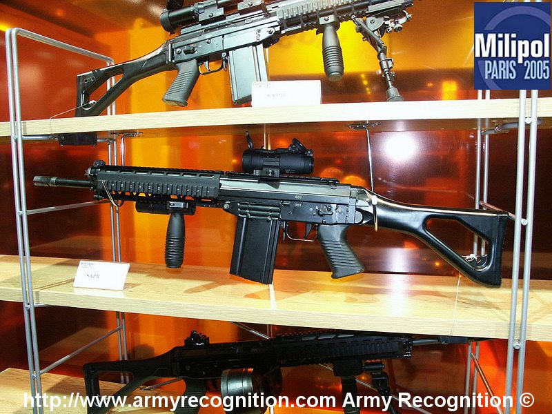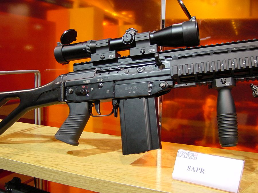 SAPR是半自动精确步枪(Semi-Automatique Precision Rifle)的缩写,这是SIG公司在SG550系列基础上扩大口径而研制的7.62 NATO口径步枪。该枪在2004年首次公布,在2009年正式投产,并正式命名为SG751系列。