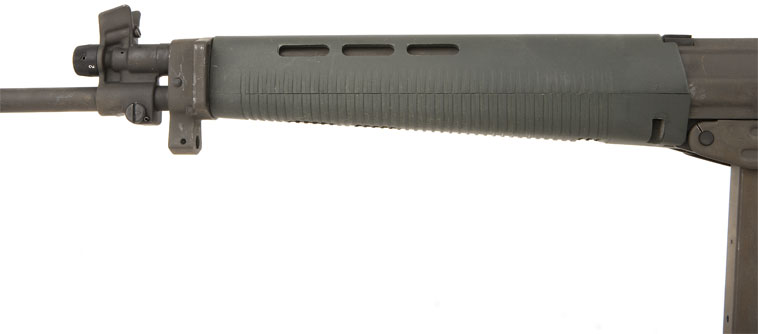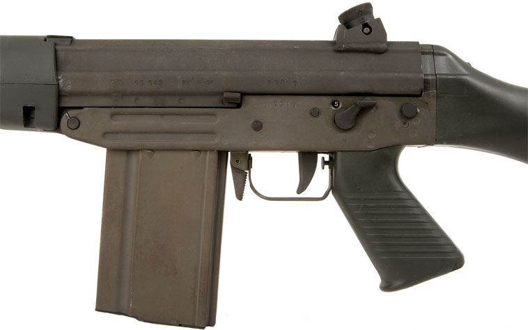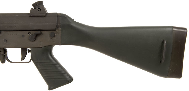 保险/快慢机选择杆在下机匣的左侧,有3个位置:保险、半自动和全自动。根据需要,还可以增加3发点射的控制装置。为提高半自动射击的精度,该枪采用带预告装置的扳机。另外备有较长的冬用扳机,平时平放在机匣下面,使用时放下。扣压该扳机后,冬用扳机上的突出部与普通扳机扣合,并带动普通扳机向后进行击发。发射枪榴弹时也使用冬用扳机。SG540配有空仓挂机装置,弹匣内的枪弹打完后,托弹板顶出空仓挂机卡笋,将枪机阻于后方位置。换装新实弹匣后,只需将机柄稍向后拉,即解脱枪机,枪机复进并推弹入膛。另一种解脱枪机的方法是,将机匣左侧、弹匣后上方的卡笋向里压,也可降下空仓挂机卡笋。